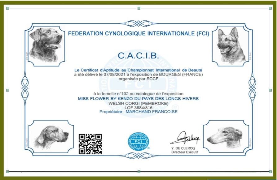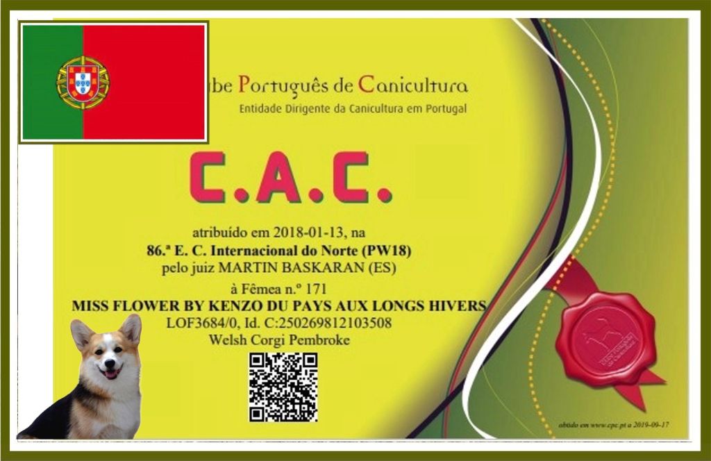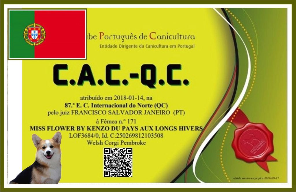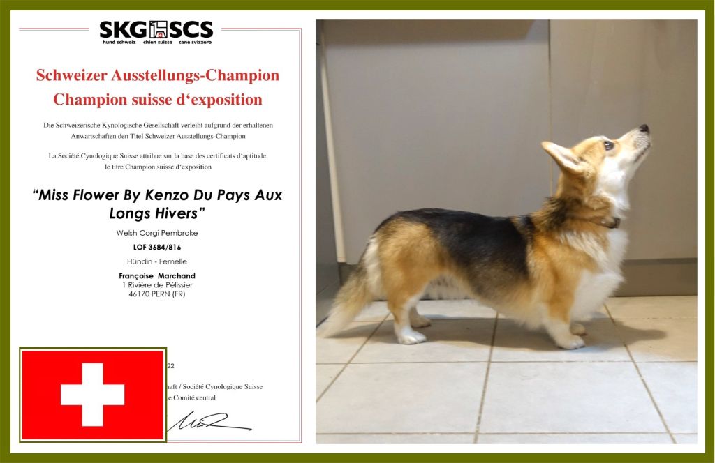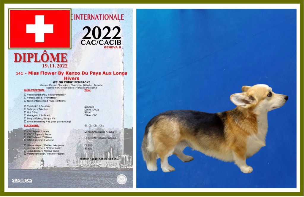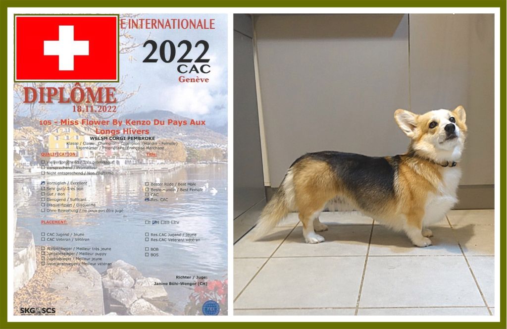 Chien Welsh Corgi Pembroke CH. Miss flower by kenzo (dite schroumpfette) du Pays aux Longs Hivers