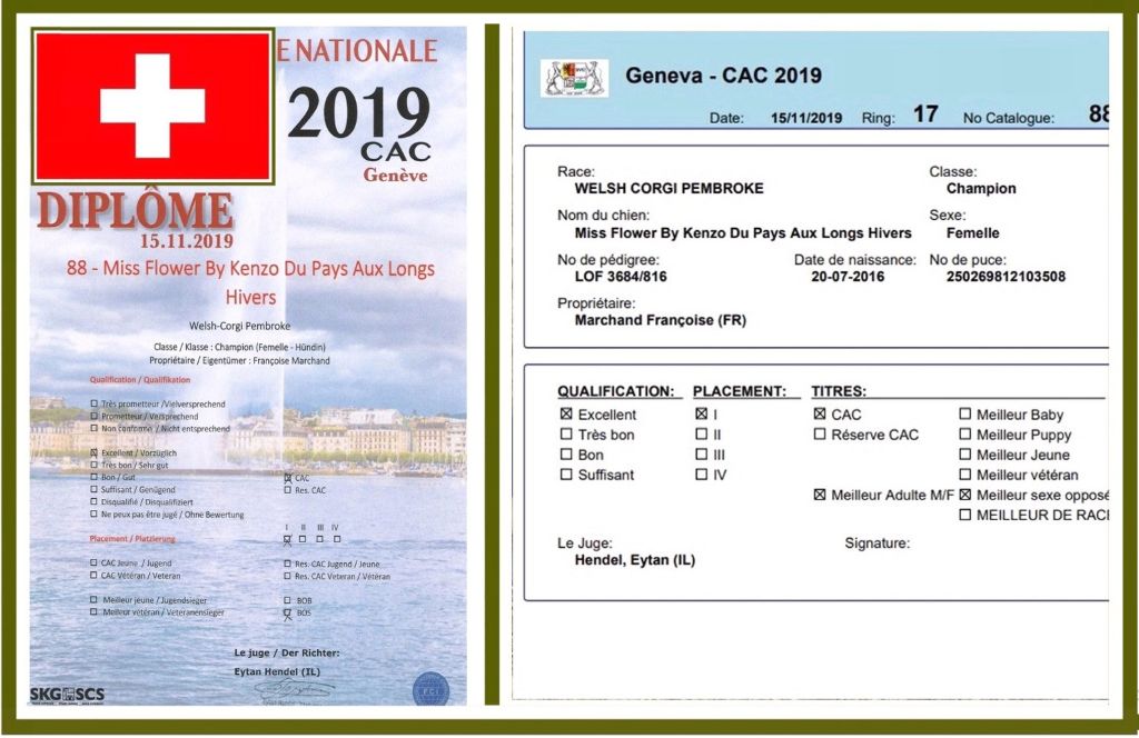 - Championne des Expositions Internationales - homologué le 30 Mai 2019