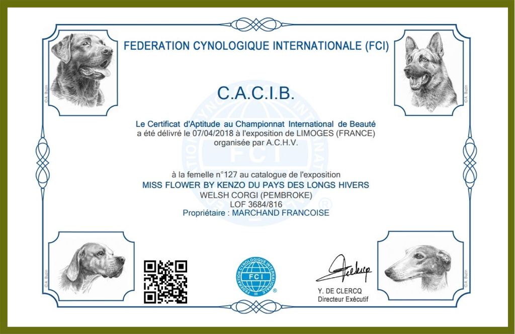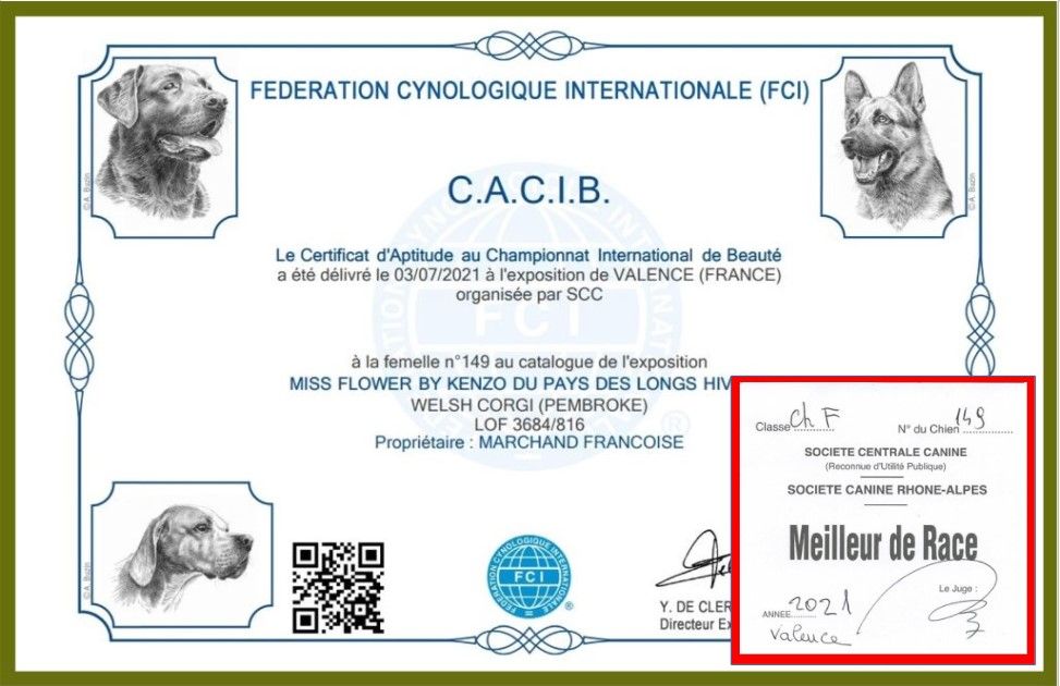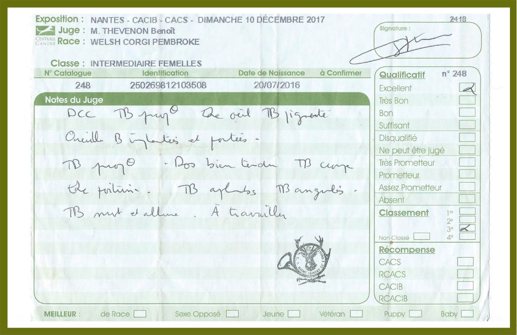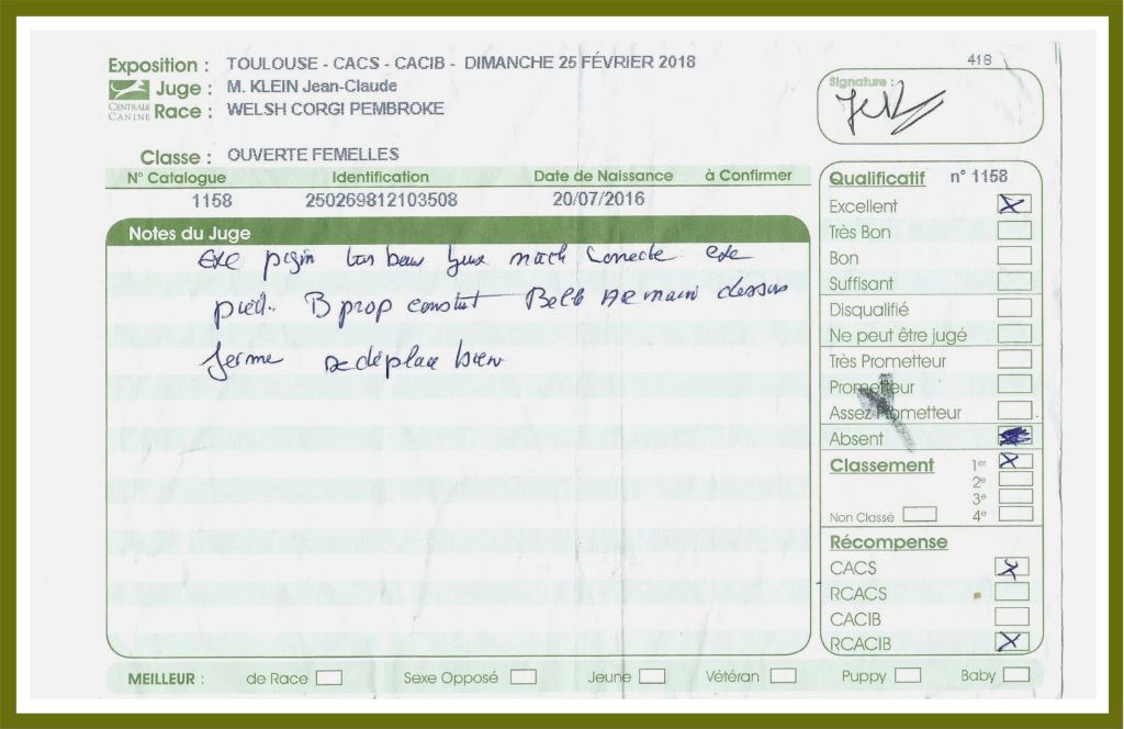 - 1er Excellent CACS en ouverte Meilleur de race- 3ième du Groupe