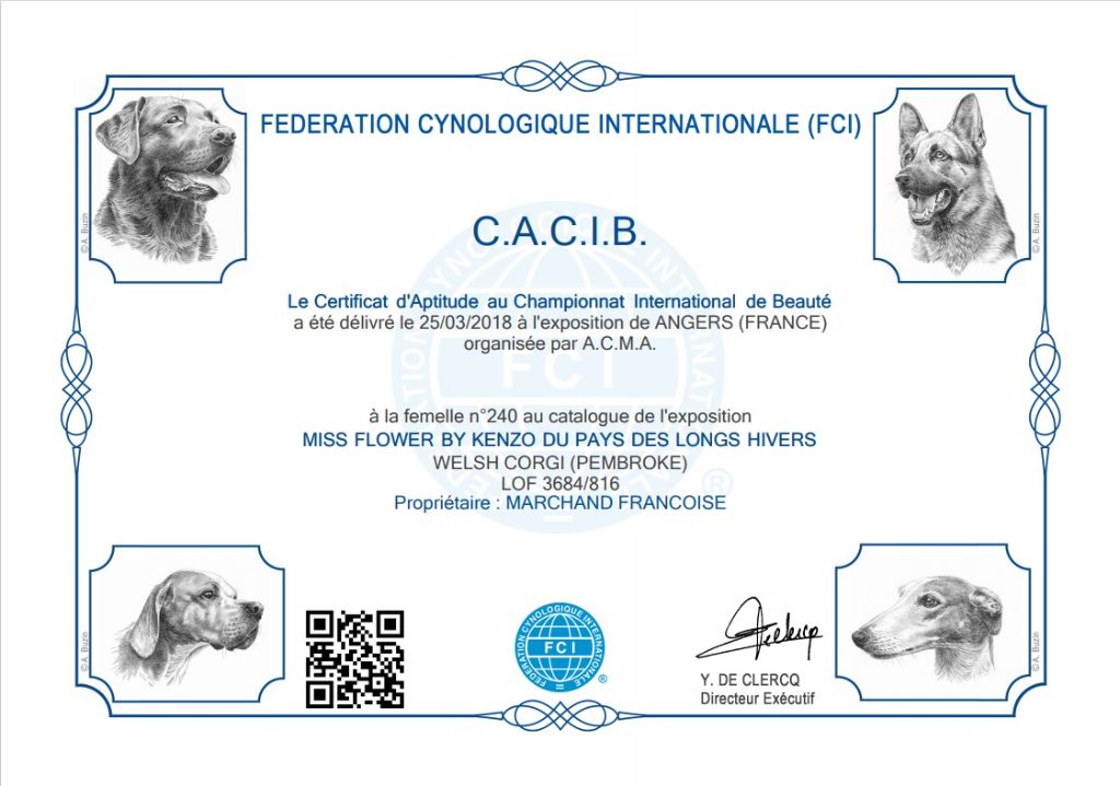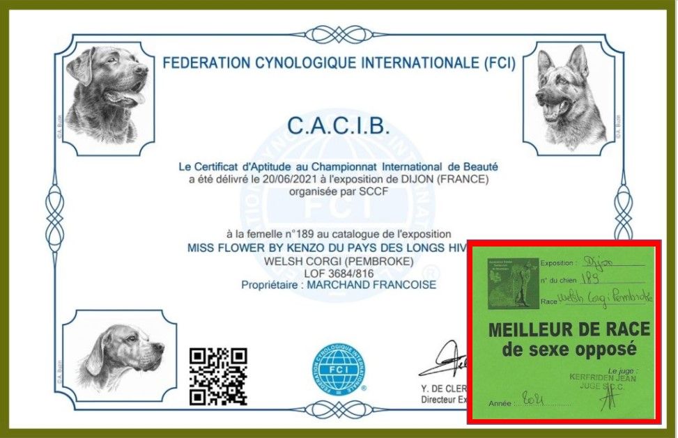- 1 ier Excellent CACS - CACIB Meilleur du sexe opposé
