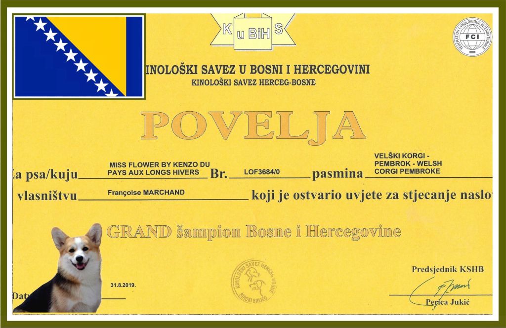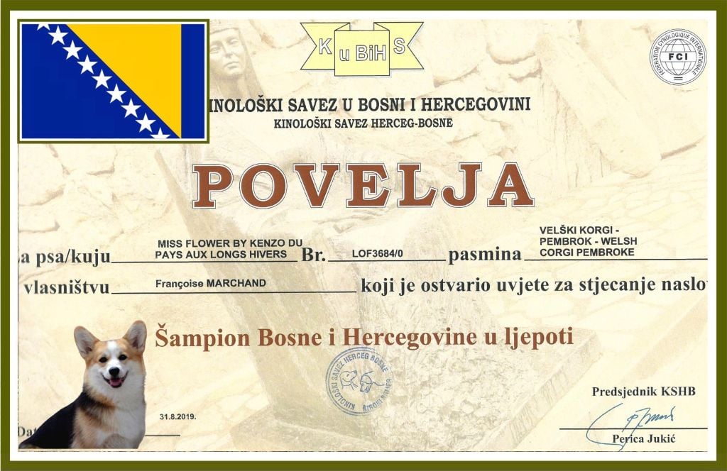 - Grande Championne de Bosnie Herzégovine 31 Août 2019