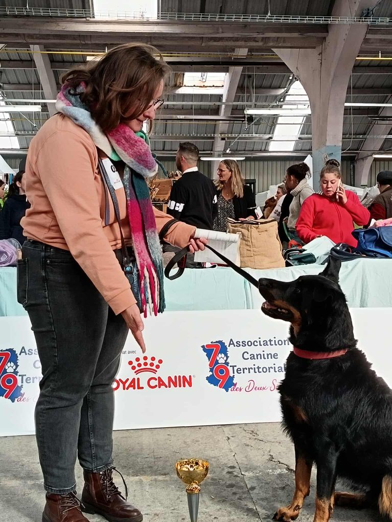 Ran'e a fini 4ème excellent sur 6, je suis très contente, il y avait beaucoup de monde et Ran'e a eu un comportement exemplaire. Il nous reste encore des choses à améliorer, le juge nous a d'ailleurs donné des petits conseils, on va travailler tout ça !