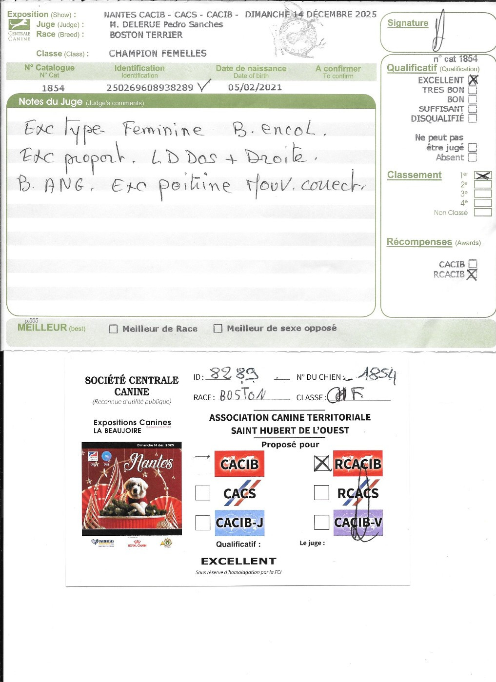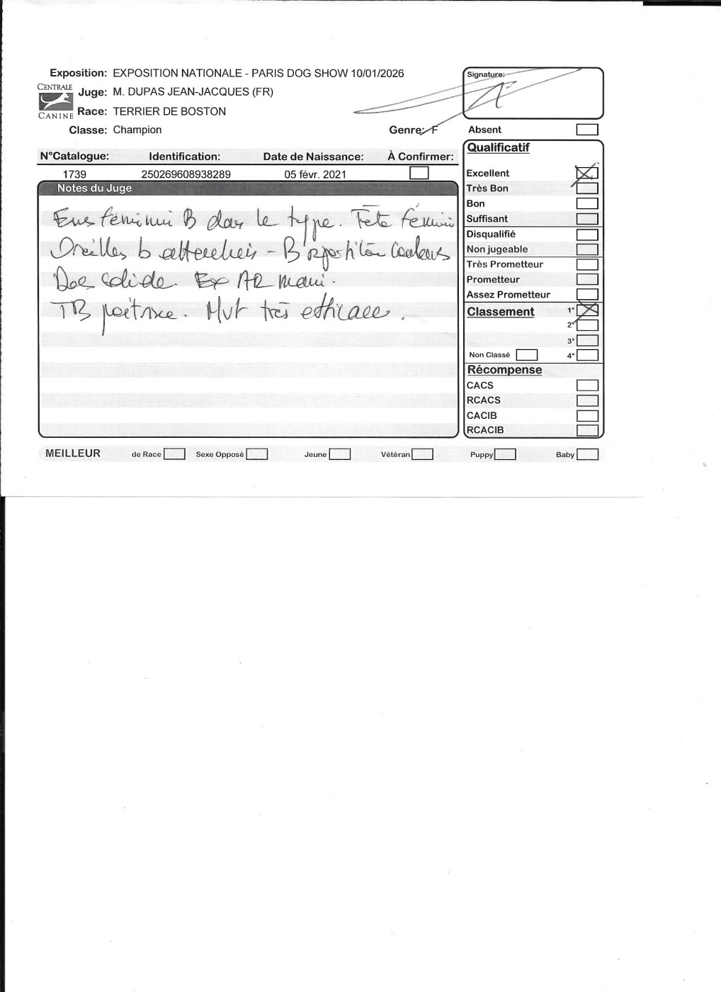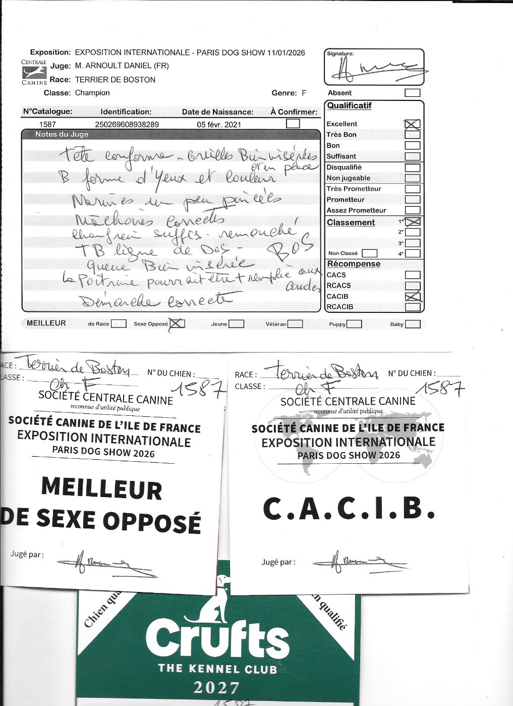 - 1° EXC CACIB BOS qualifiée CRUFTS 2027