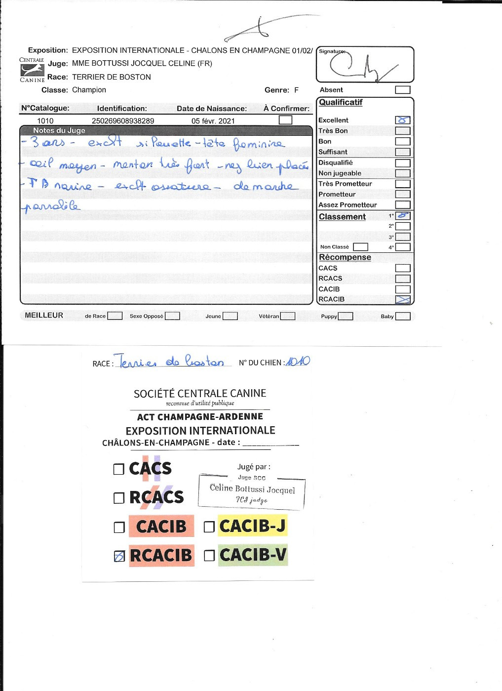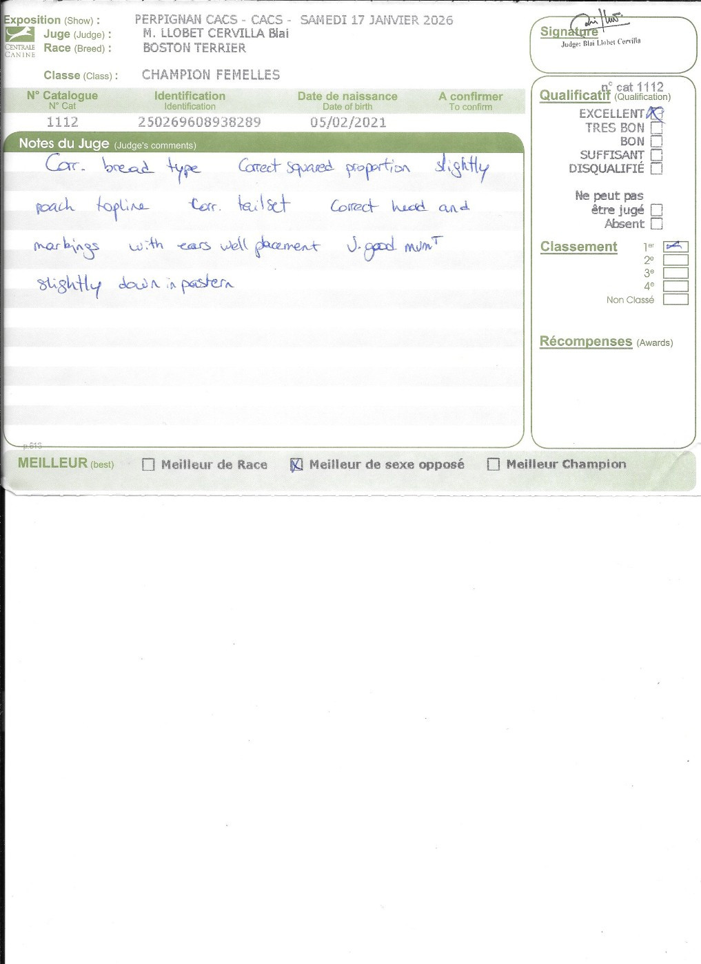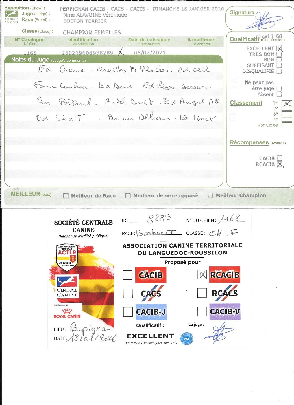 - 1° EXC CACIB BOS qualifiée CRUFTS 2027