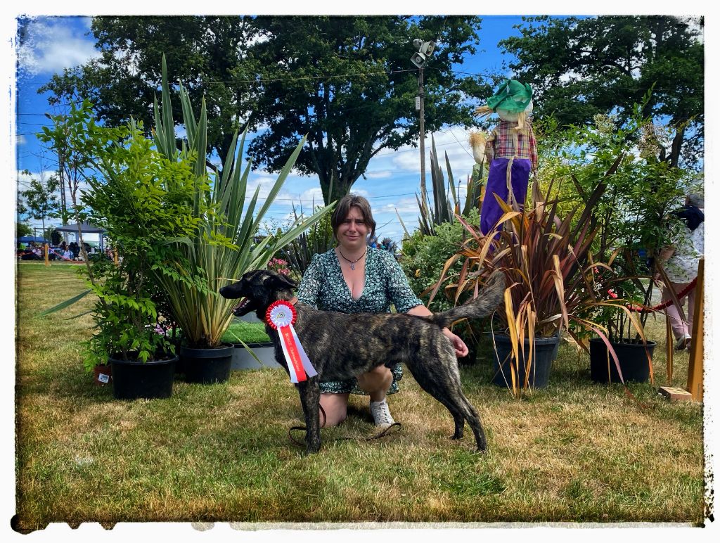 Dentition complète, minimum de la taille, très bon type et pigmentation, bonne tête et bringures, port d'oreilles un peu écartées, bonne ligne de dos, épaule un peu droite, bonne angulation arrière bon aplomb avant arrière, très bonne démarche