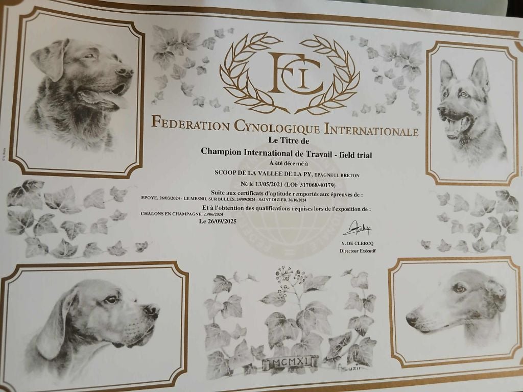 - TITRE DE CHAMPION INTERNATIONAL DE TRAVAIL DE FIELD TRIAL