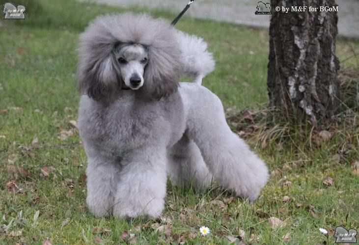 ORNELLA est une adorable caniche au caractère doux et câlin. C'est une petite naine grise. Elle a été confirmée à 31cm au garrot.