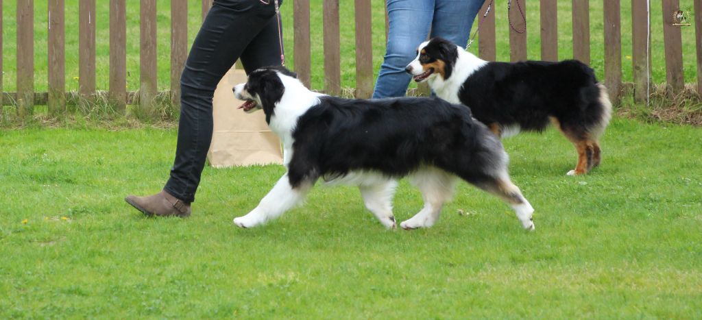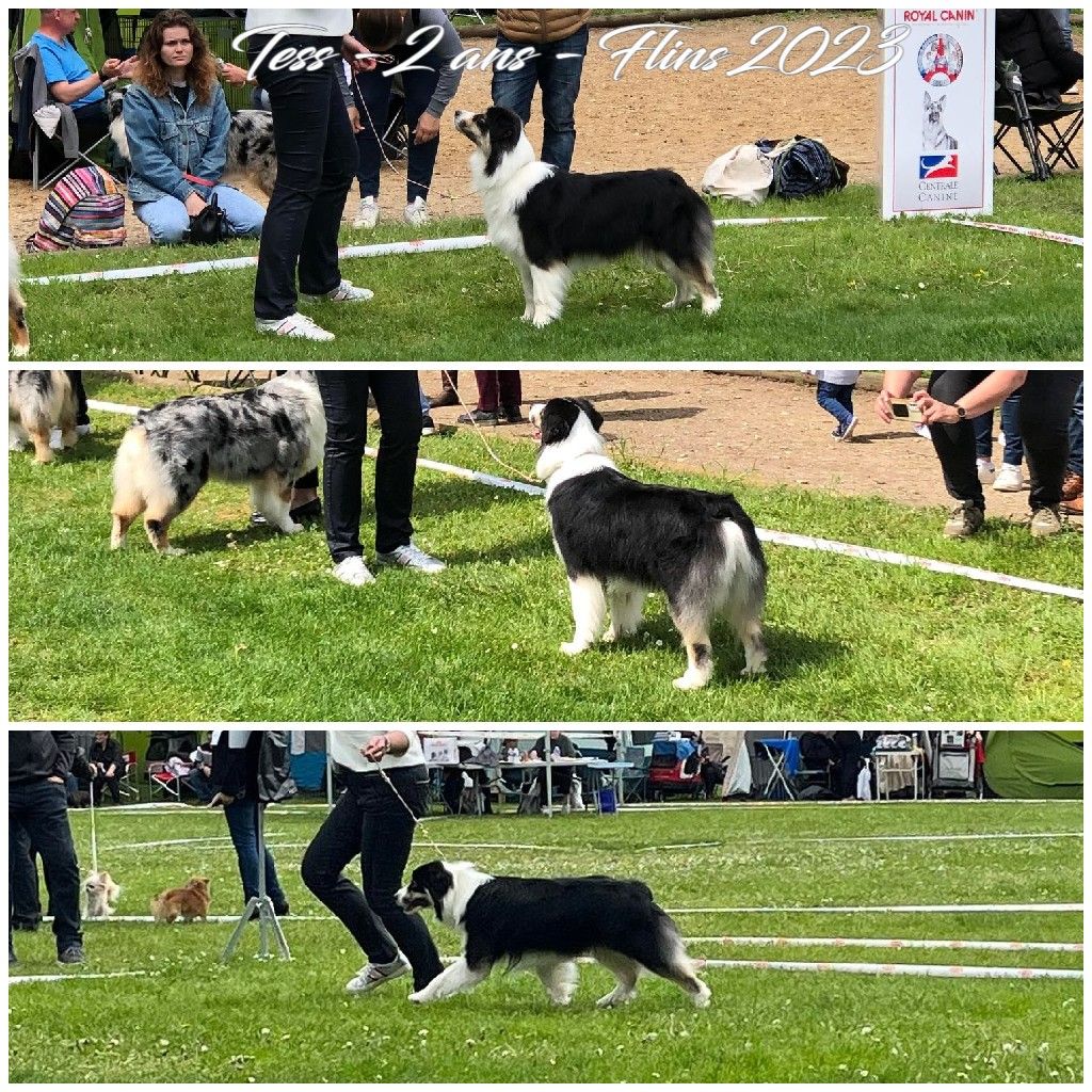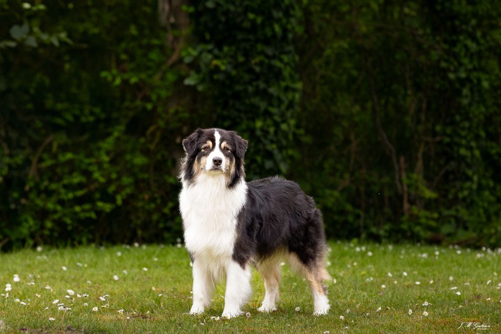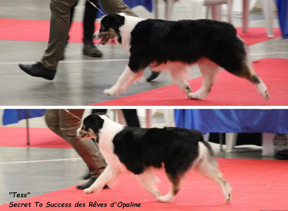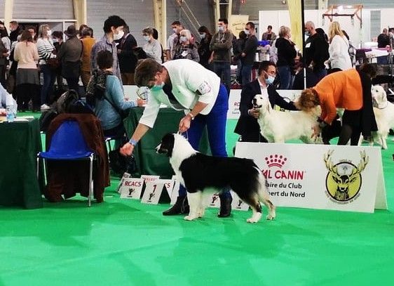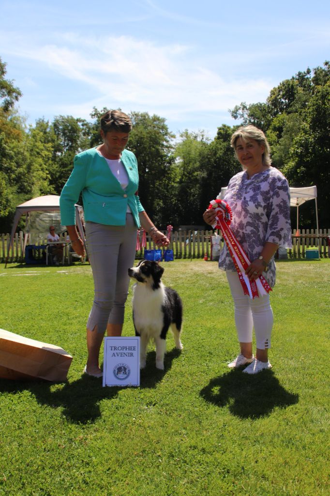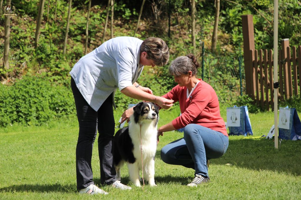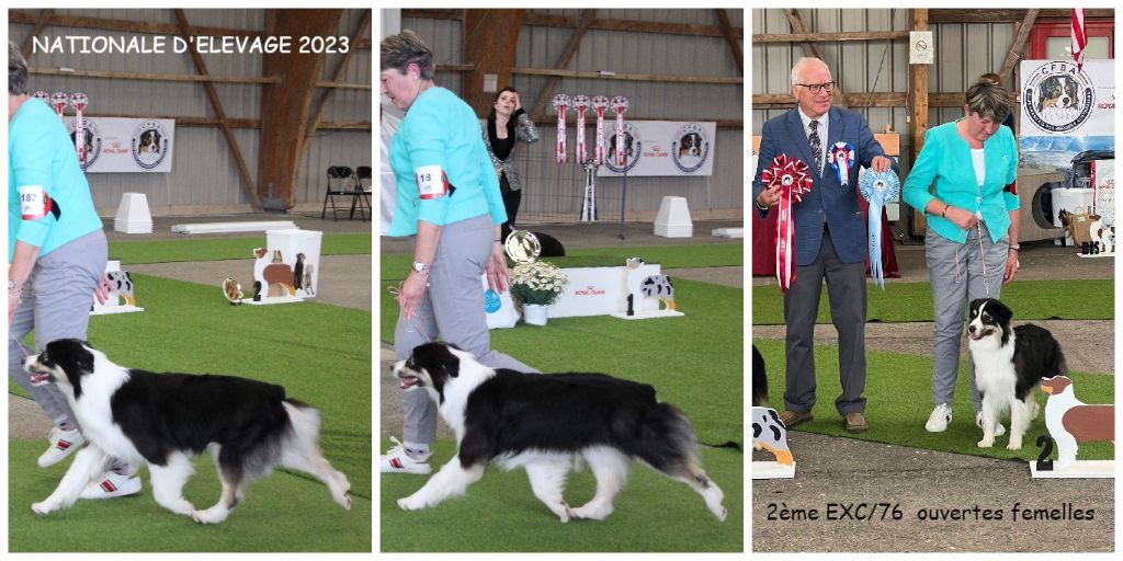 DCC - taille moyenne - bonnes proportions - EXC dos et croupe - EXC angulations et ossature - encolure dégagée - tête féminine, bonnes proportions - arcade un peu marquée - EXC yeux - EXC oreilles bien portées - EXC Allures typiques, calmes et efficaces - dos bien tendu.
