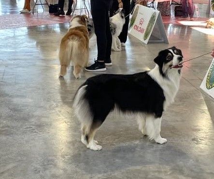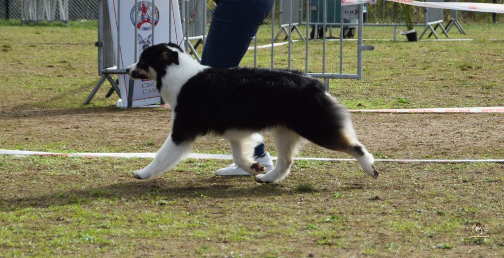 6 mois - noir tricolore - Magnifique petite chienne qui connait le job. Tête : Exc tête dans son ensemble - Exc rapport crâne/chanfrein - Exc crâne, stop, chanfrein - Exc pigmentation de museau - Exc oeil et forme - Exc oreilles, port, forme et longueur - Exc menton. Corps : Exc encolure, ligne dessus dessous, croupe, grasset, Exc poitrine mais doit encore descendre - Exc côtes - Excellent pieds - Exc ossature. Mouvement : Exc aller/retour, Exc prise de terrain - typique allure bergère. Exc caractère, présentation, fourrure.