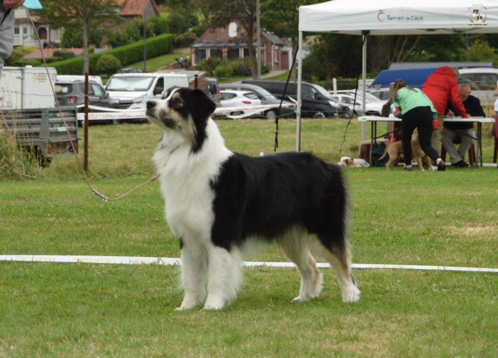 Chienne féminine, harmonieuse dans l'ensemble - Excellente tête - Exc. oreilles - Exc encolure - Exc ossature et angulations AV/AR - Exc proportions d'ensemble. Mouvement régulier, de bonne amplitude. - Exc condition générale et caractère - Exc présentation.