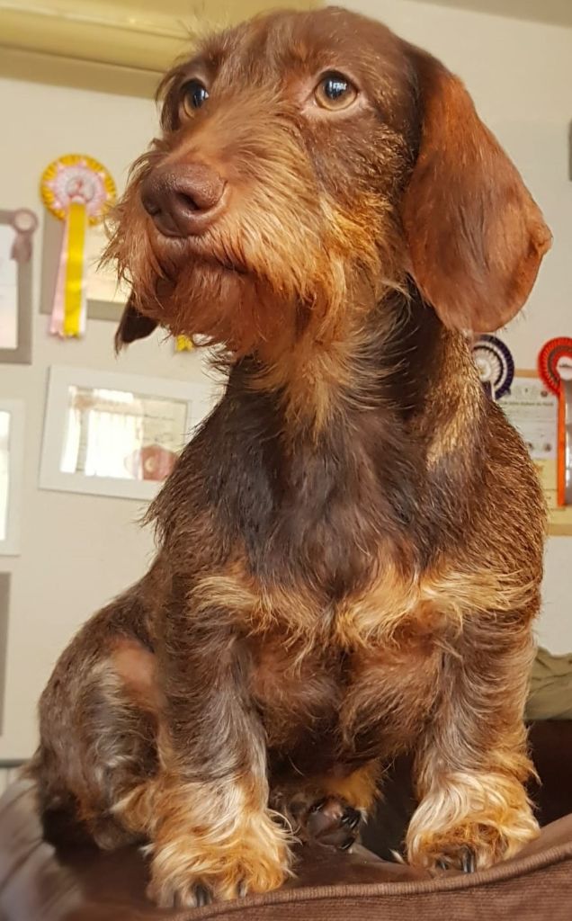 Chien Teckel poil dur Mi choko bn Du Domaine Des Deux Anges