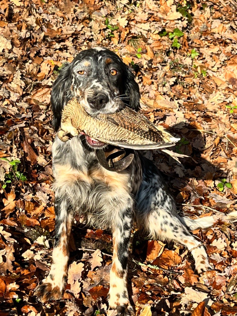 Petite chienne pétillante très très passionnée ultra connectée elle Verouille ses premiers oiseaux avec bcp de facilité et une grande fermeté. Elle patronne naturellement elle rapporte pour le moment elle remplit tous les critères que je recherche ces parents n'y sont pas pour rien avec Helfy une super chienne de chasse et Pixel un athlète et bête de chasse. A suivre