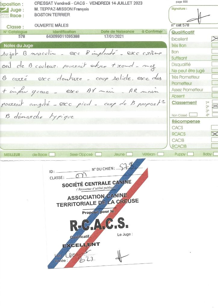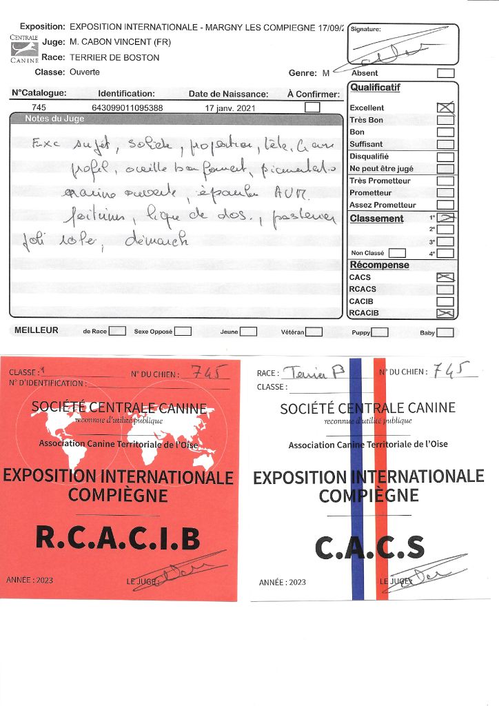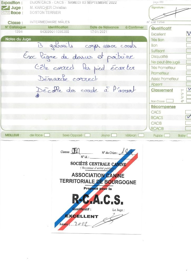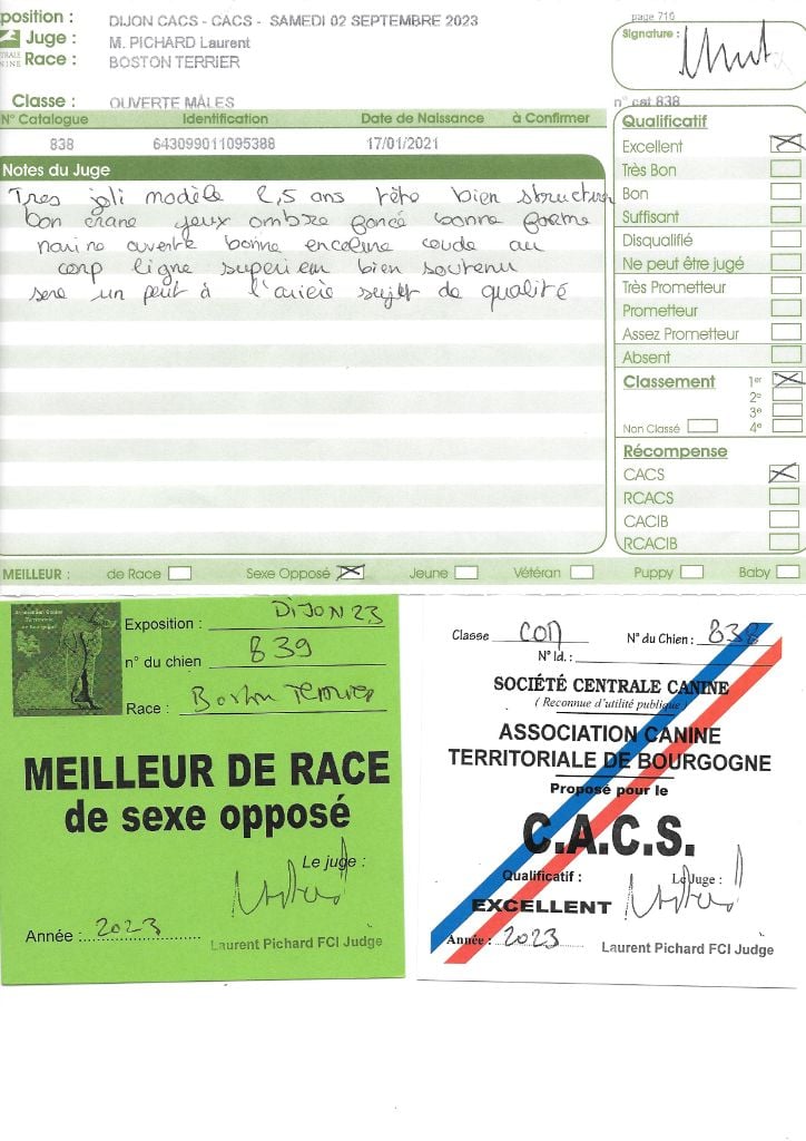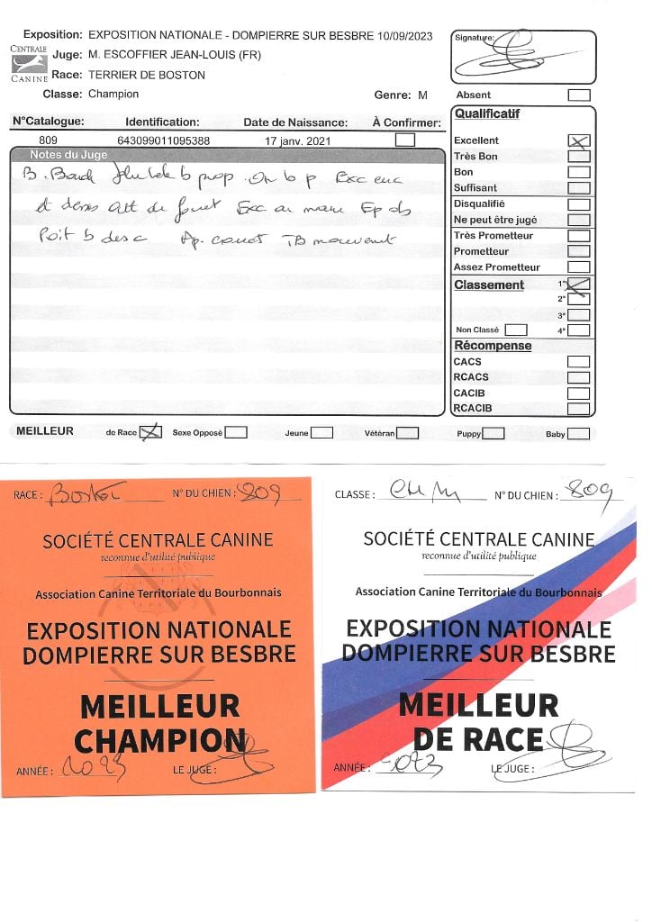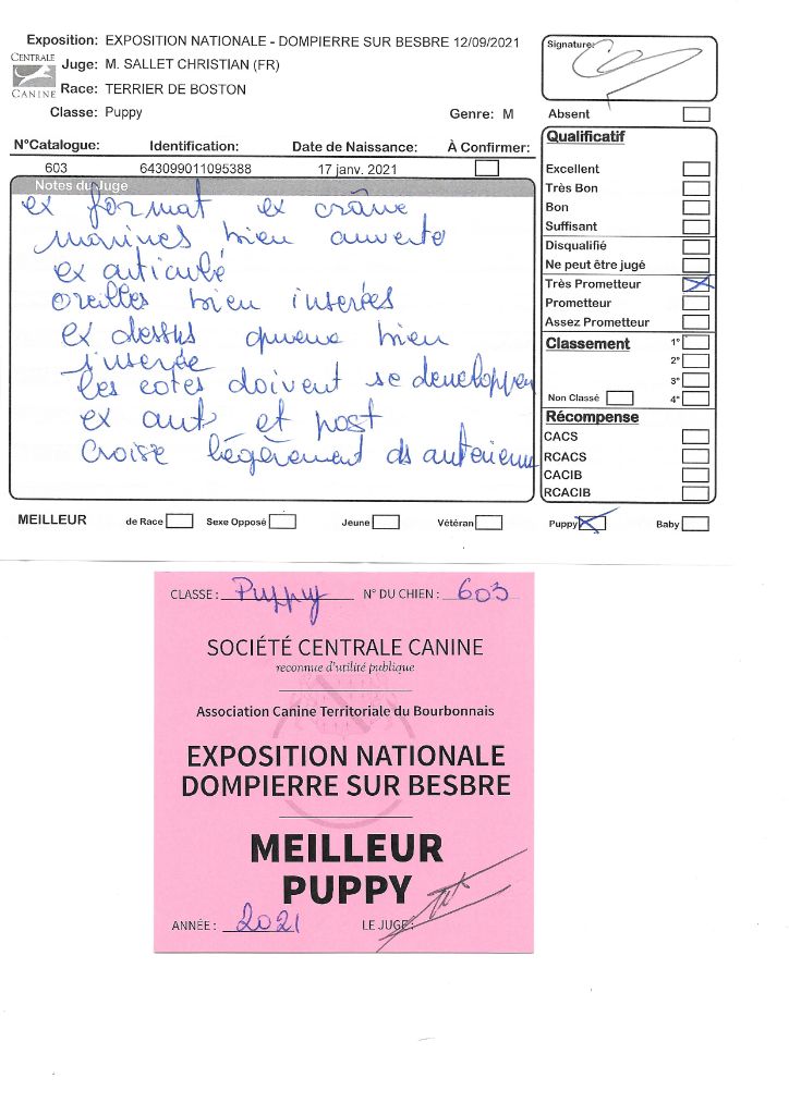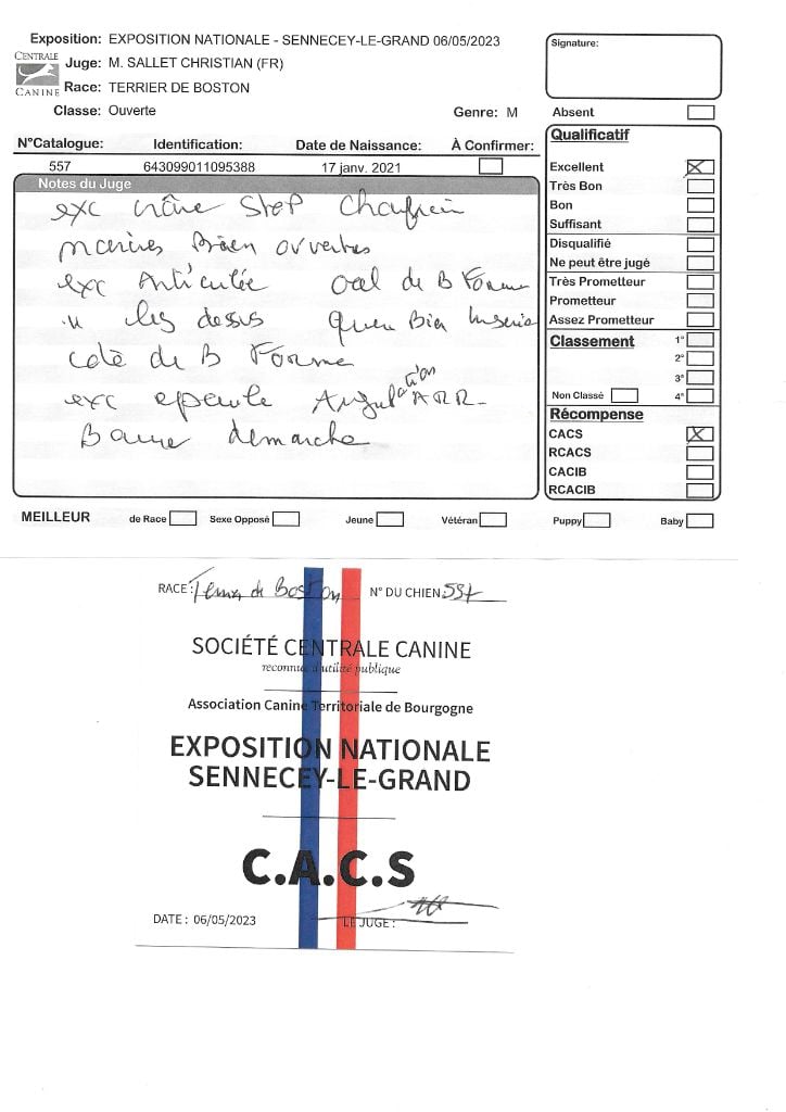 Manifestion : CACS Spéciale Boston - Juge : Mr PICHARD Laurent