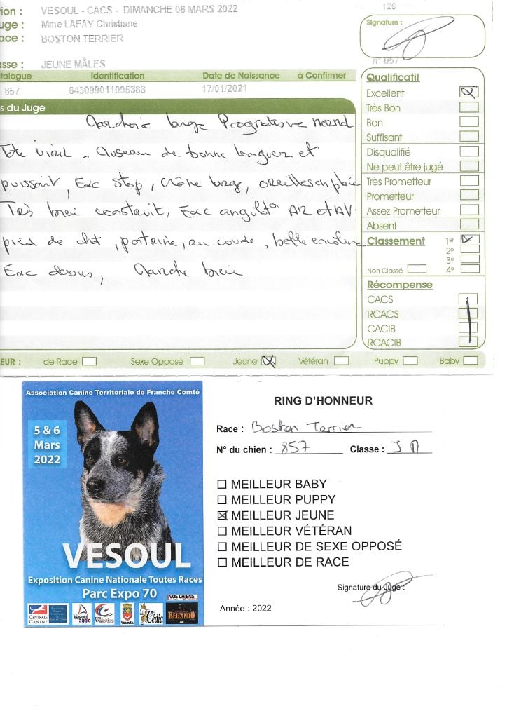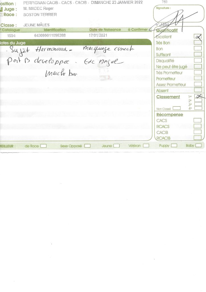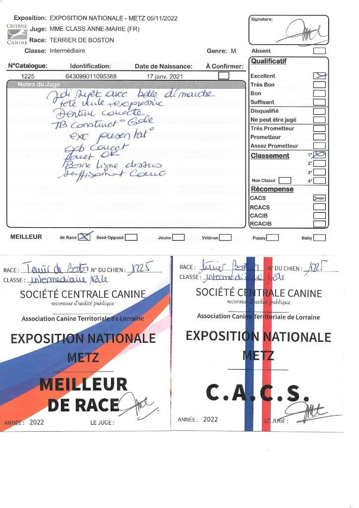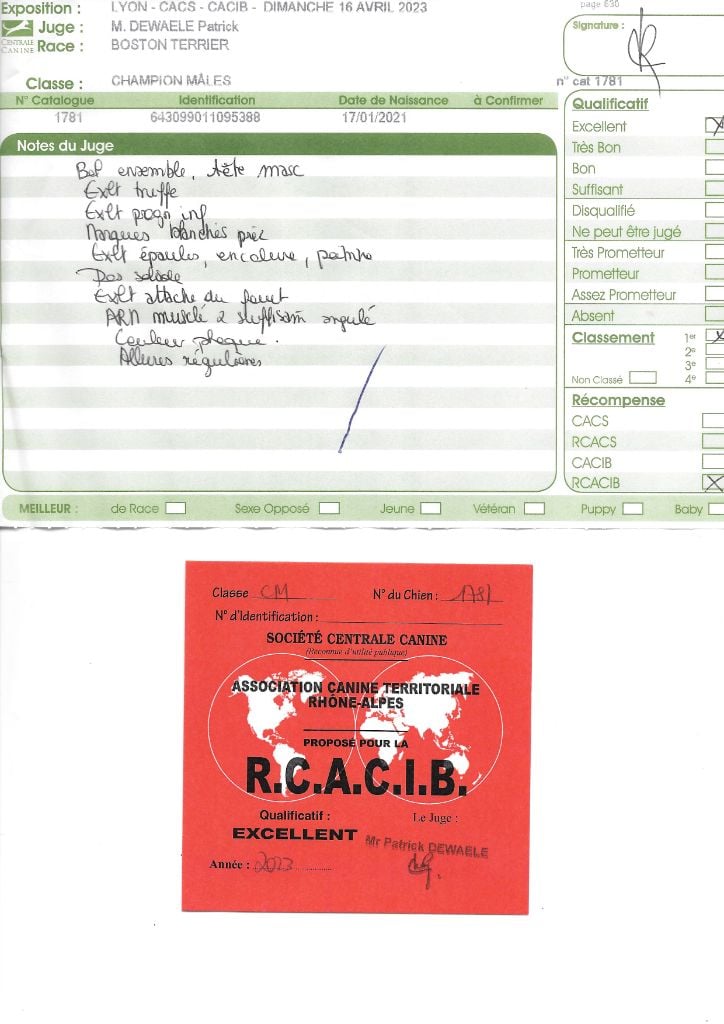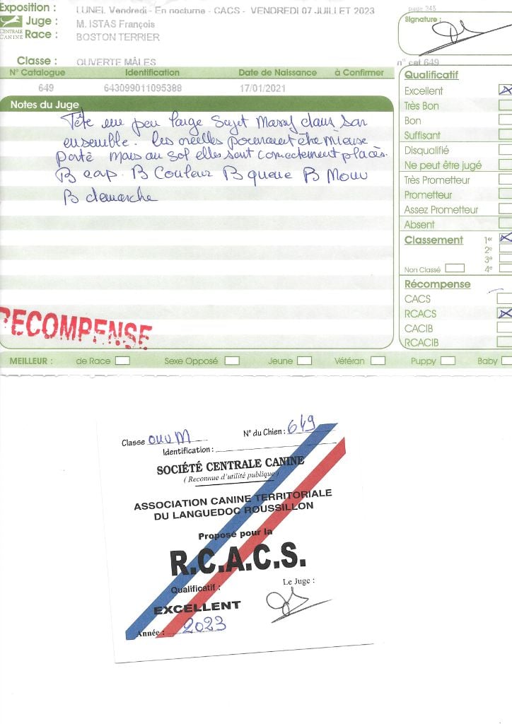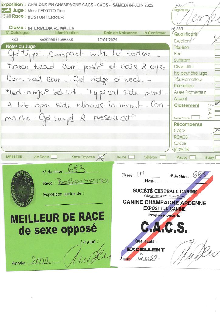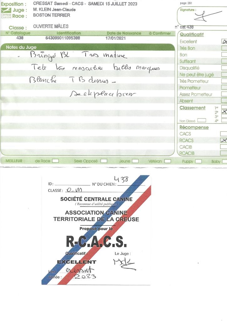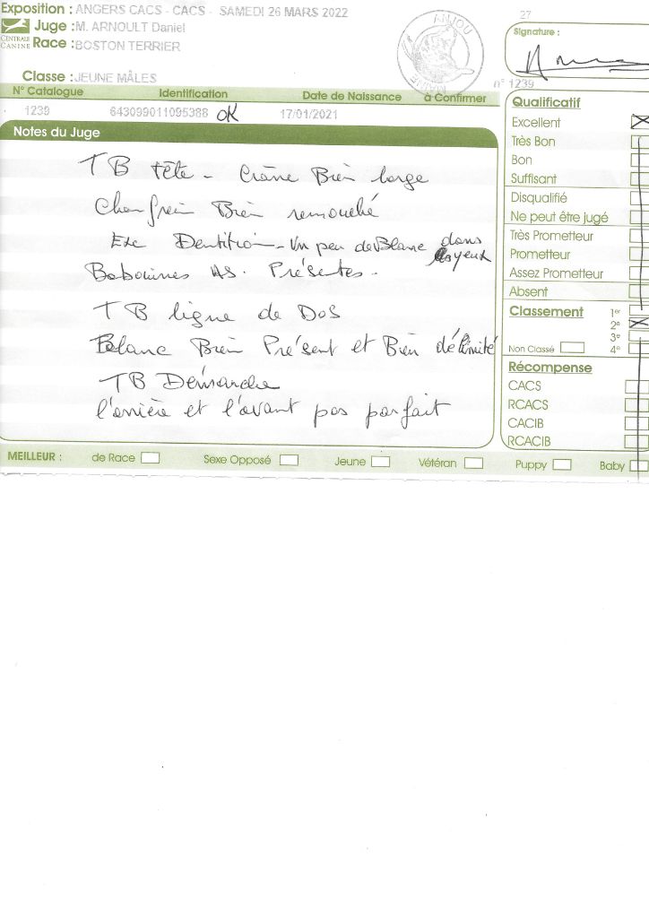 Manifestion : CACS Spéciale Boston - Juge : Mr PICHARD Laurent