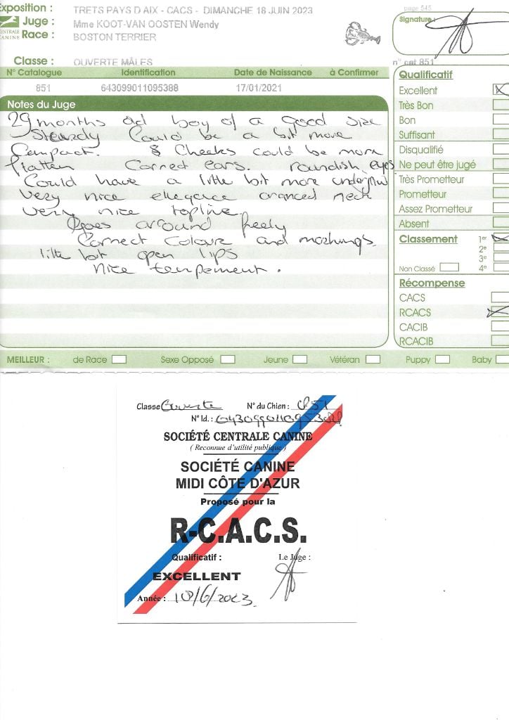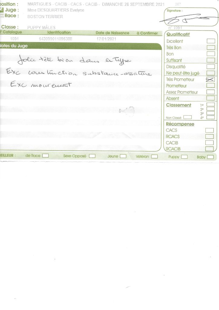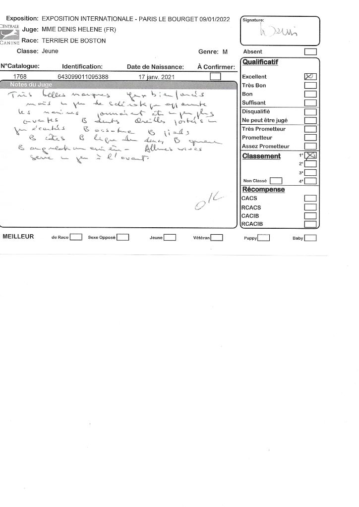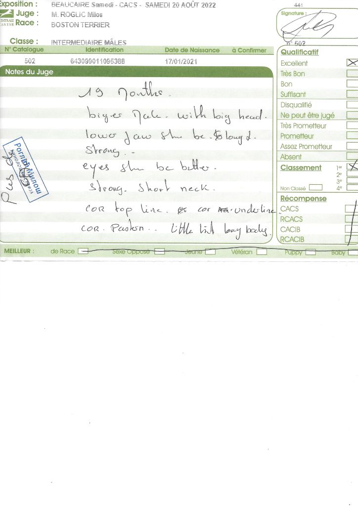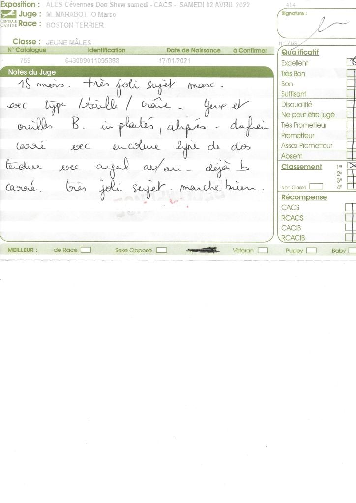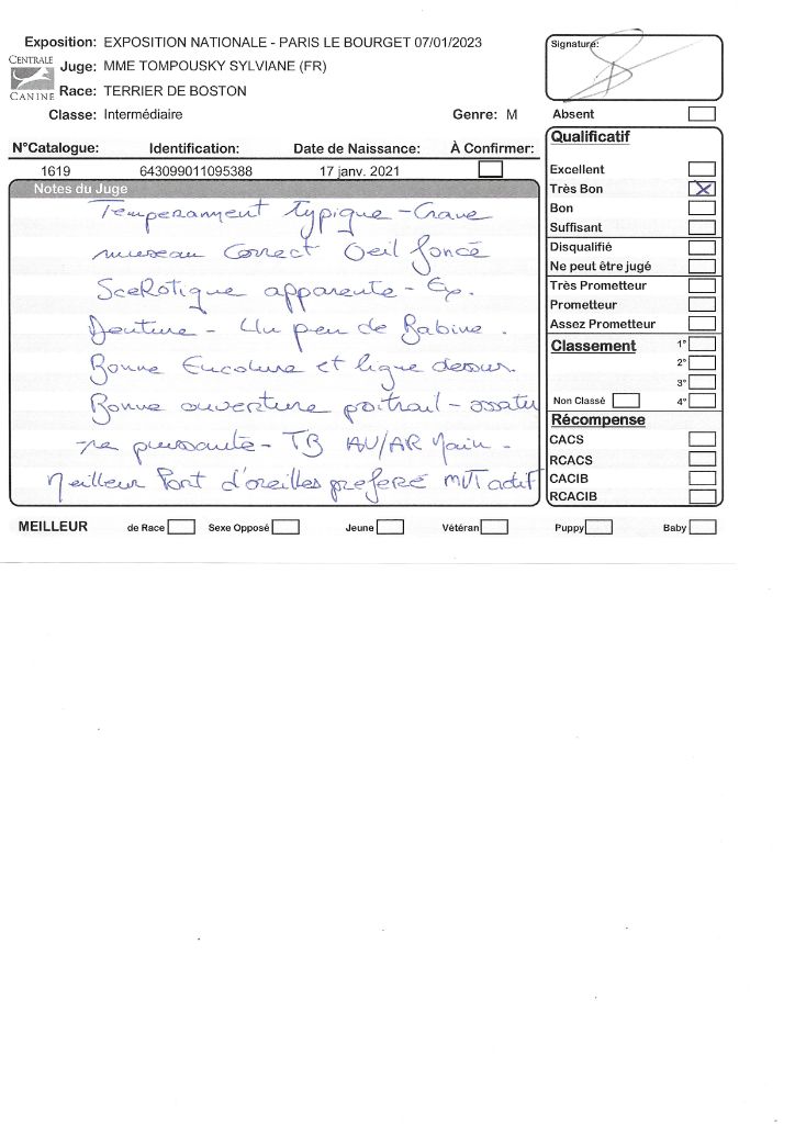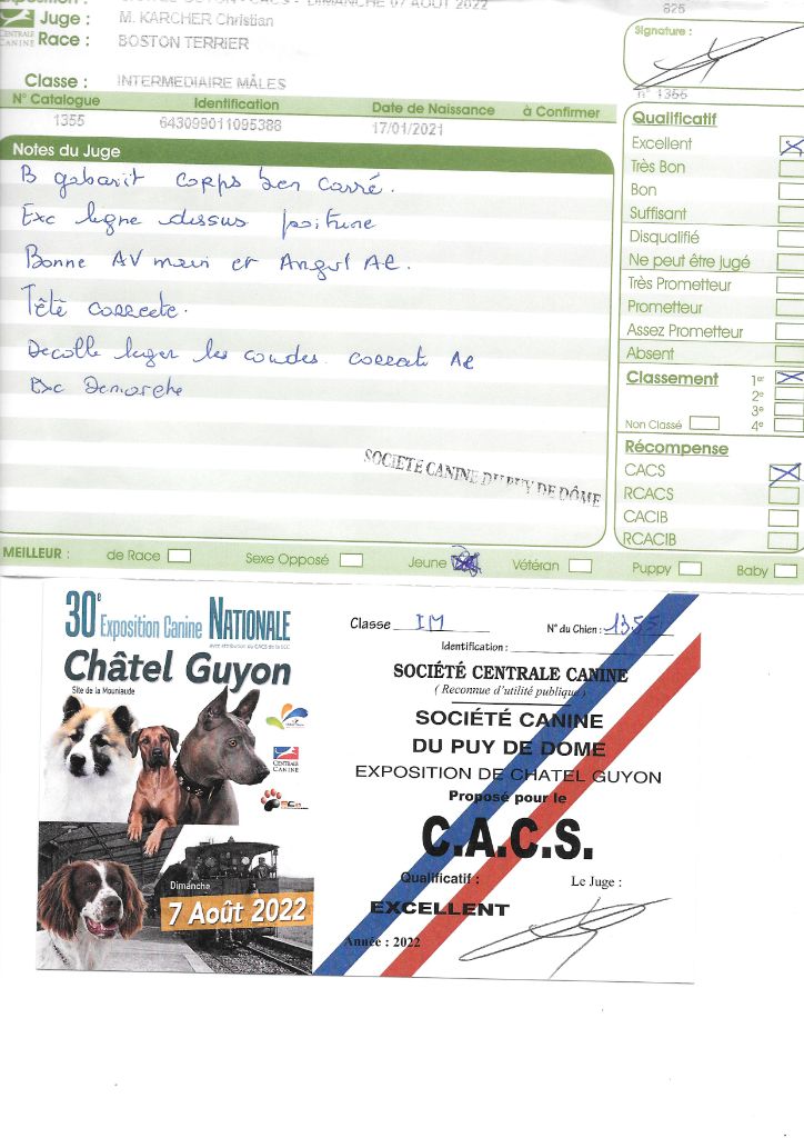 Manifestion : CACS Spéciale Boston - Juge : Mr PICHARD Laurent