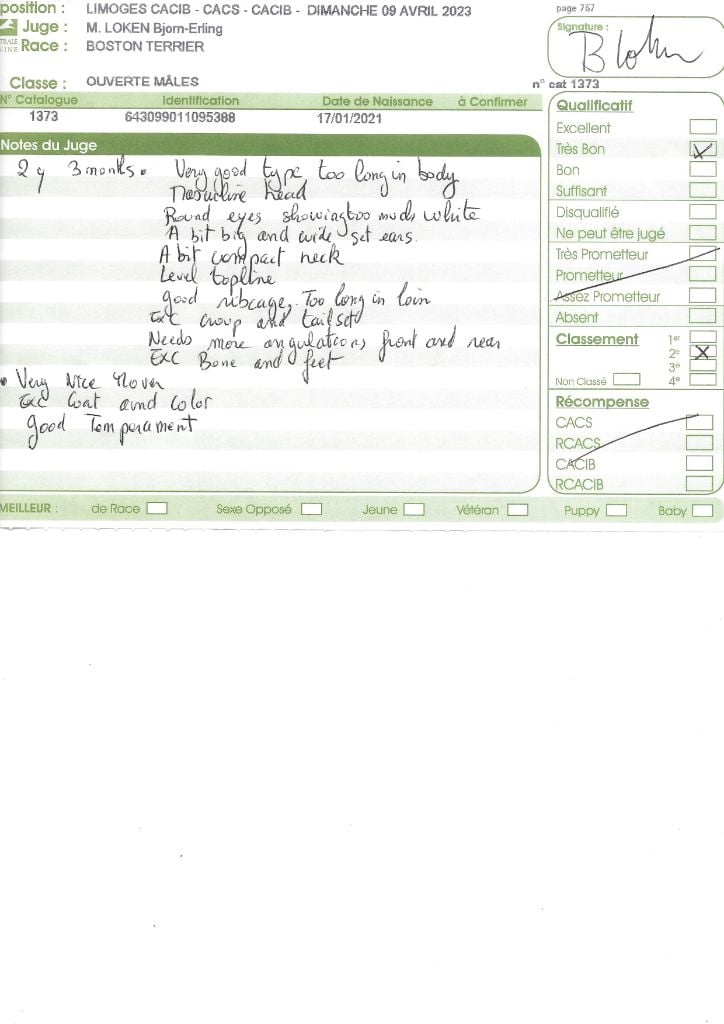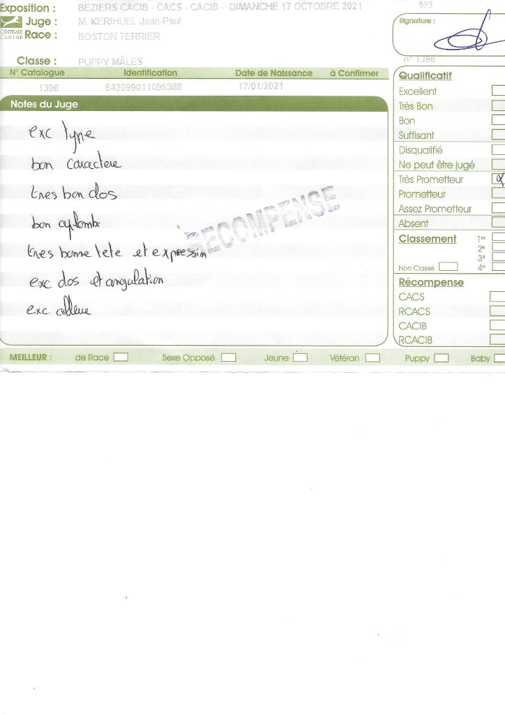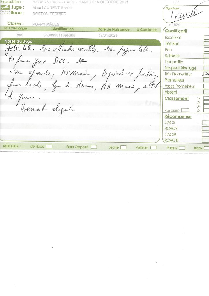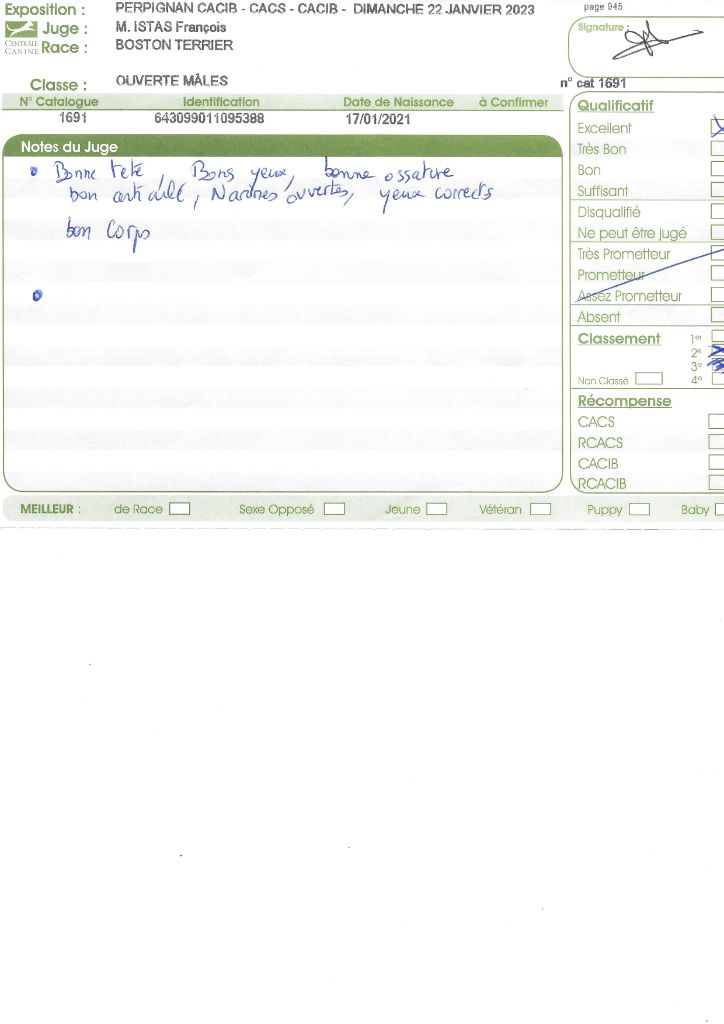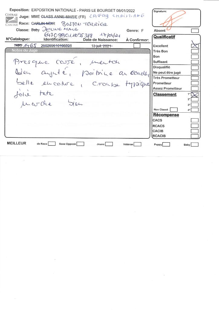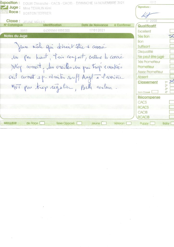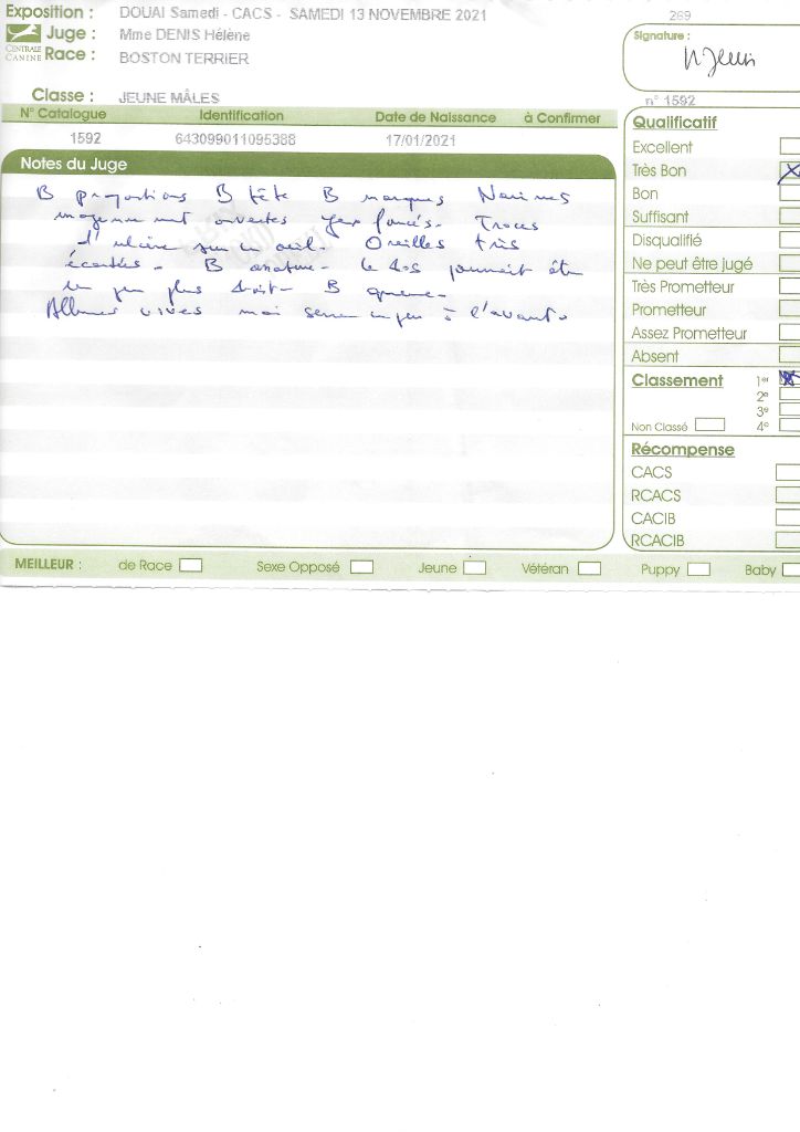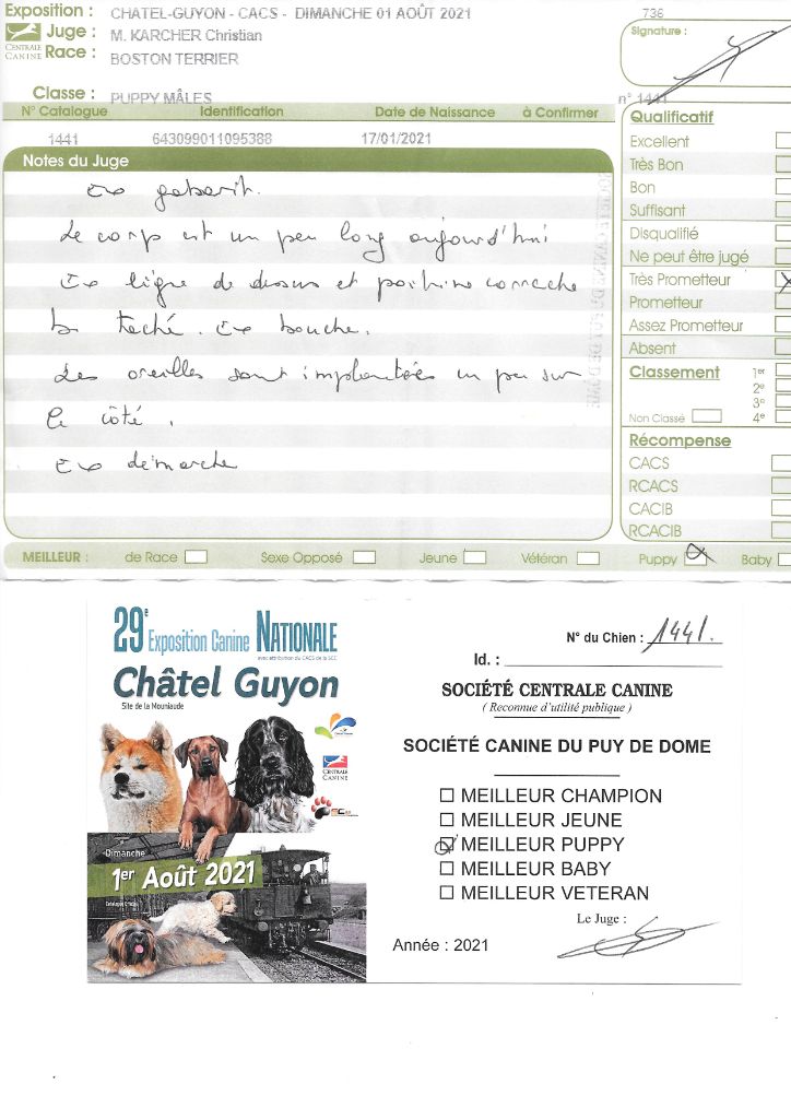 Manifestion : CACS Spéciale Boston - Juge : Mr PICHARD Laurent