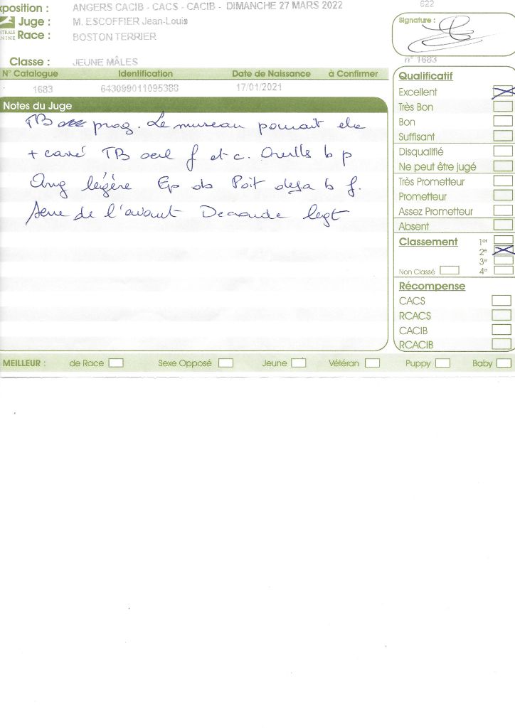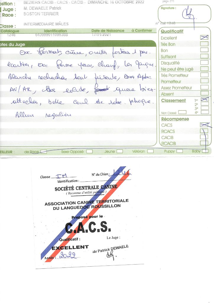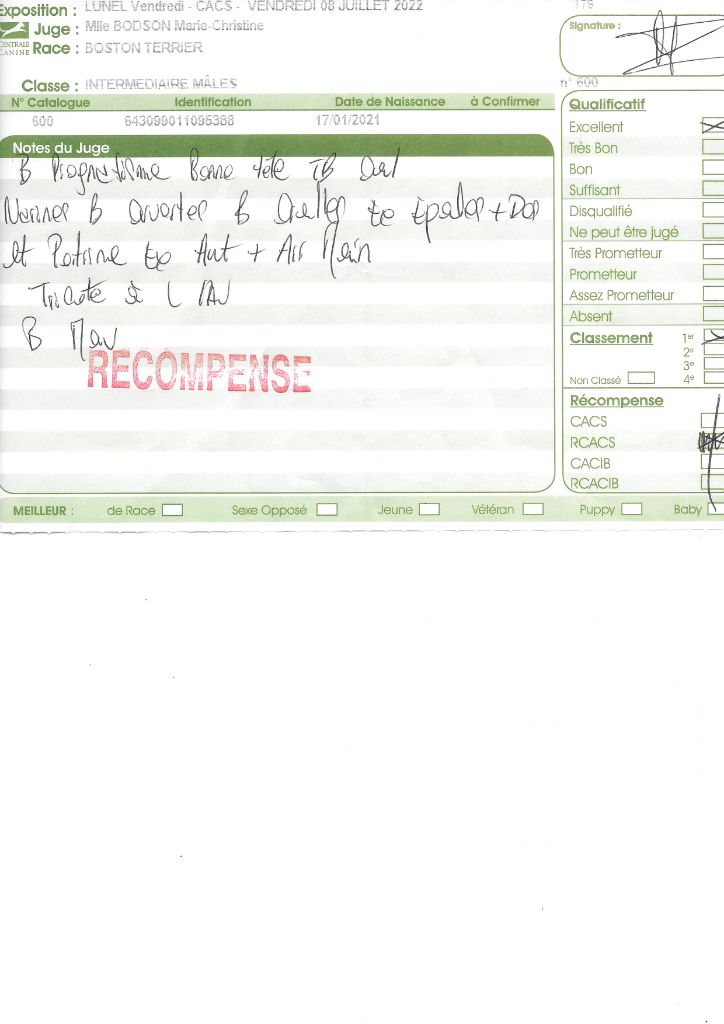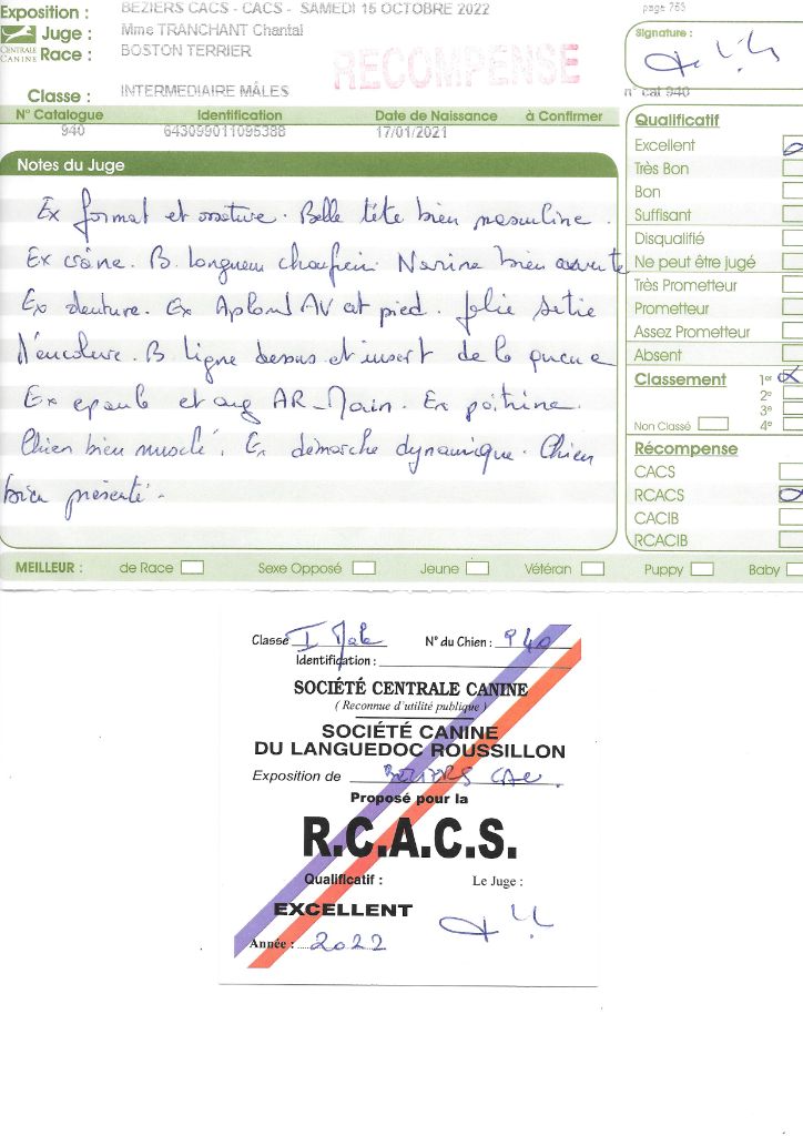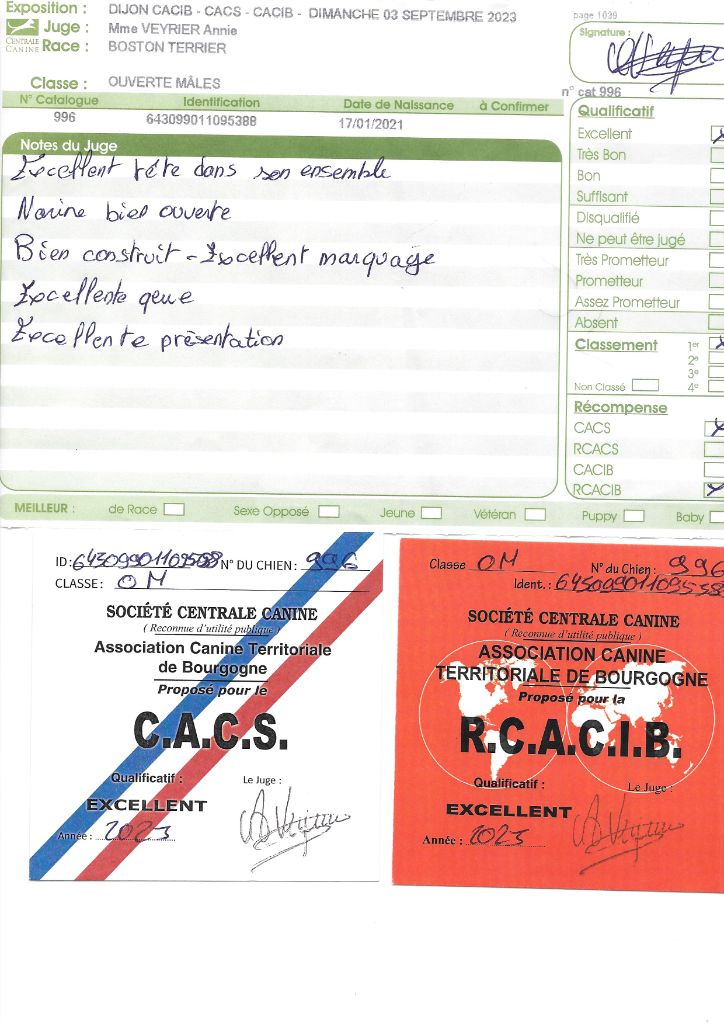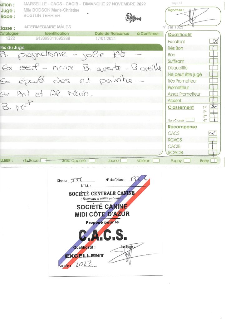 - 1° EXC CACS BOB classe intermédiaire