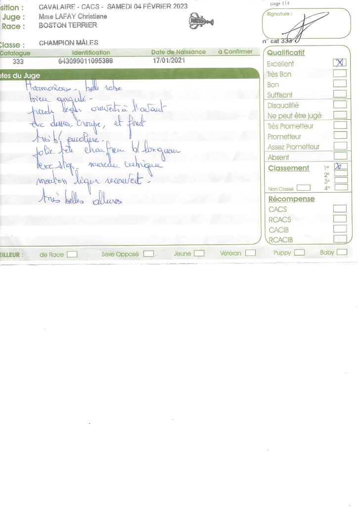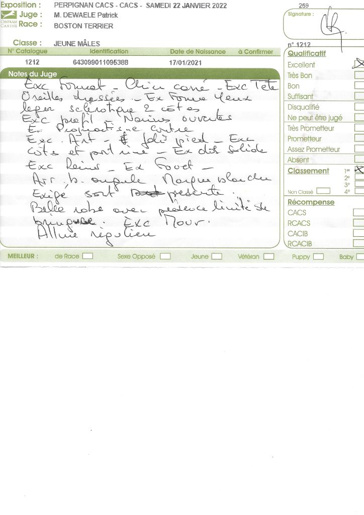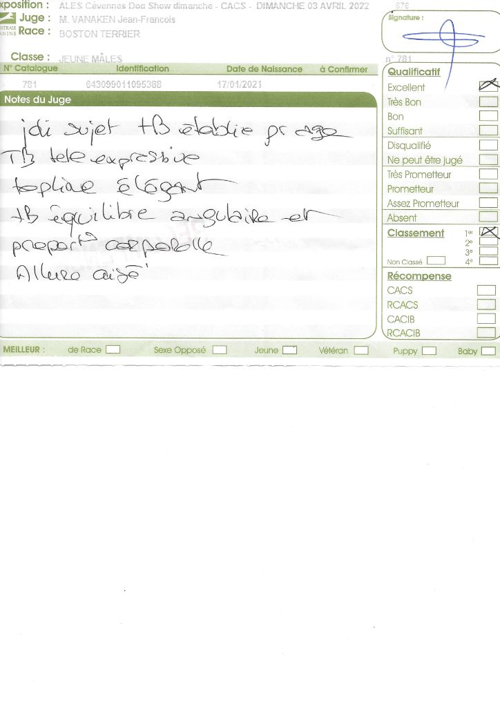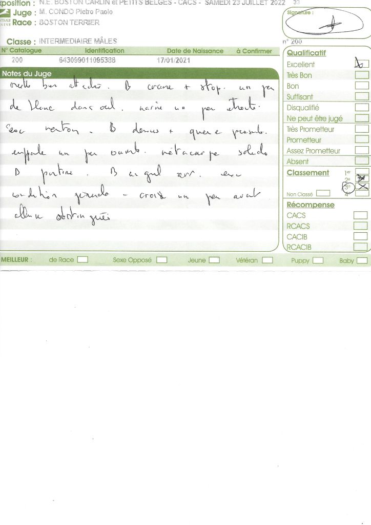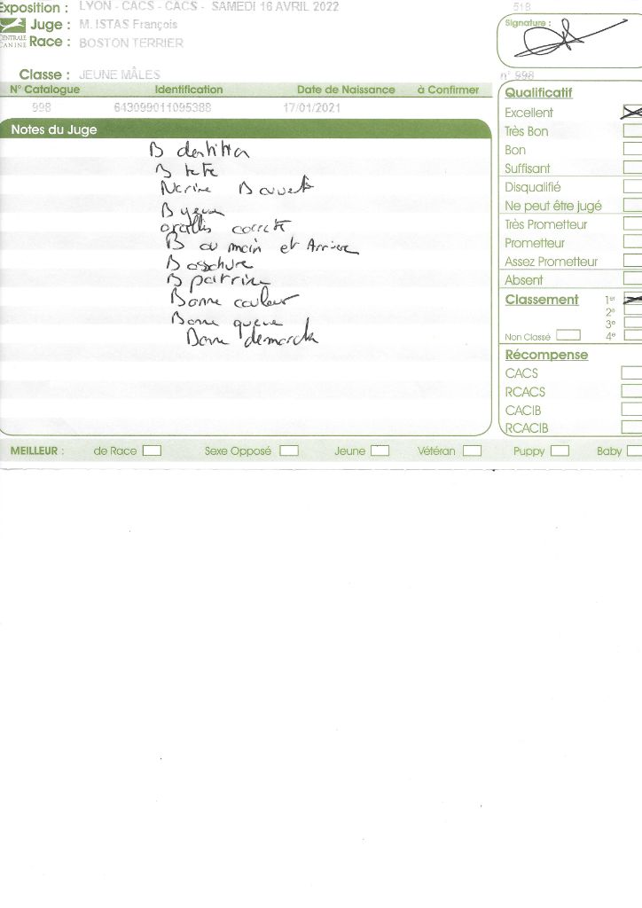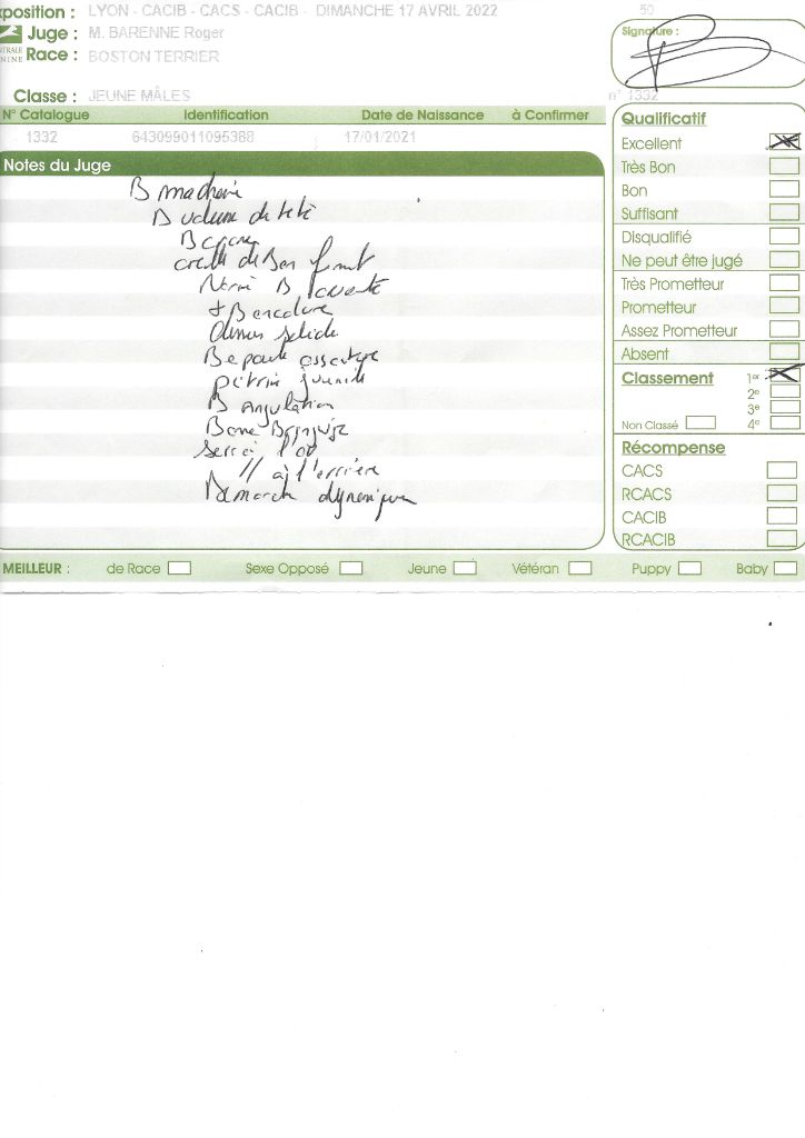 - 1° EXC CACS BOB classe intermédiaire