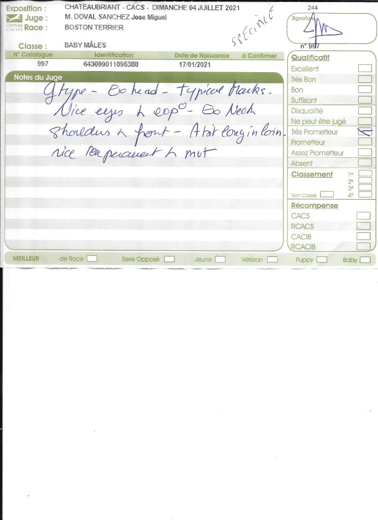 Manifestion : CACS Spéciale Boston - Juge : Mr DOVAL SANCHEZ Jose Miguel