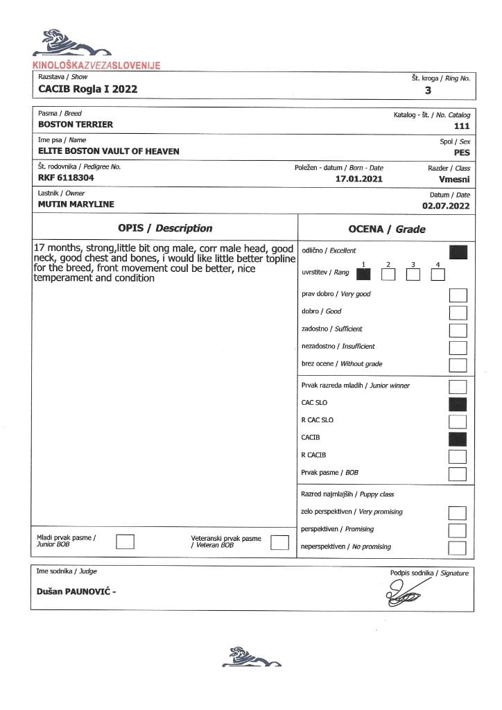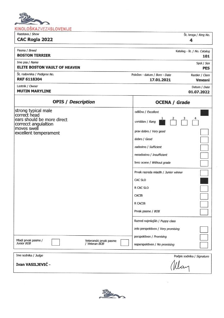 Manifestion : CAC - Juge : Mr Ivan VASILJEVIC