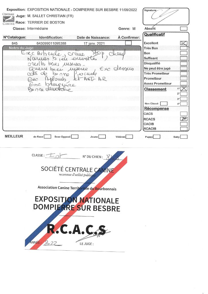 - 1° EXC CACS RCACIB classe intermédiaire