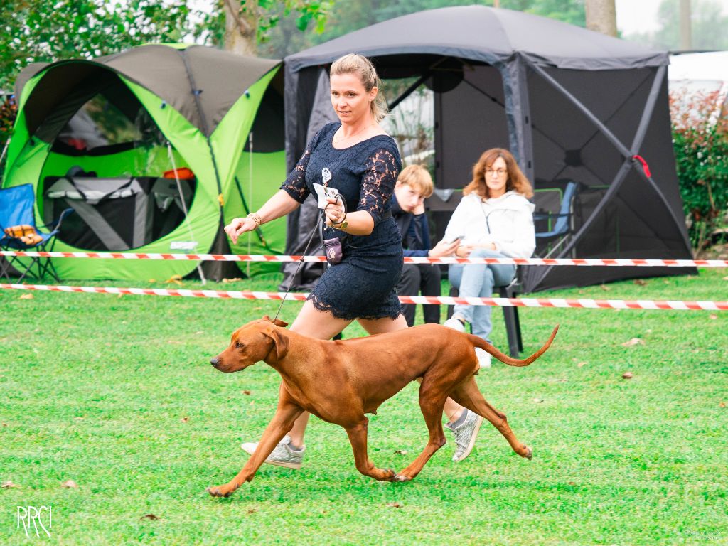 Chienne élégante mais encore légèreExcellente tête, féminine bien typéeExcellent ridge et couronnesexcellente couleurBonne angulations avant arrièresTrès juvénile dans ses allures