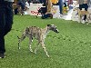 Féminine et assez puissante. Exc pigmentation. DCC. Exc dessus et dessous. Angulations avant et arrière trop ouvertes. Exc applomb fouet. Aller retour correct. Mouvement latéral correct mais sans réelle amplitude.