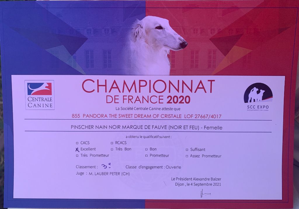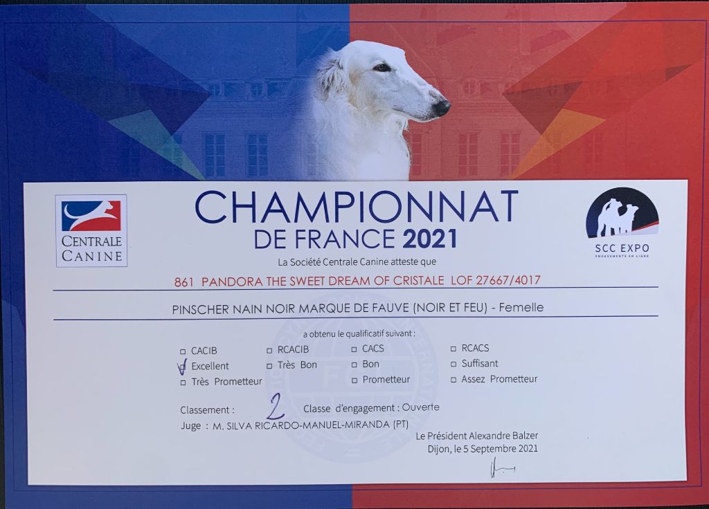 1X - 2ème Excellent Classée Championnat de France 2021;