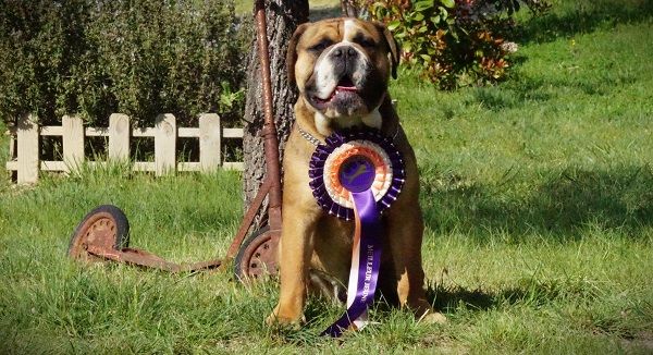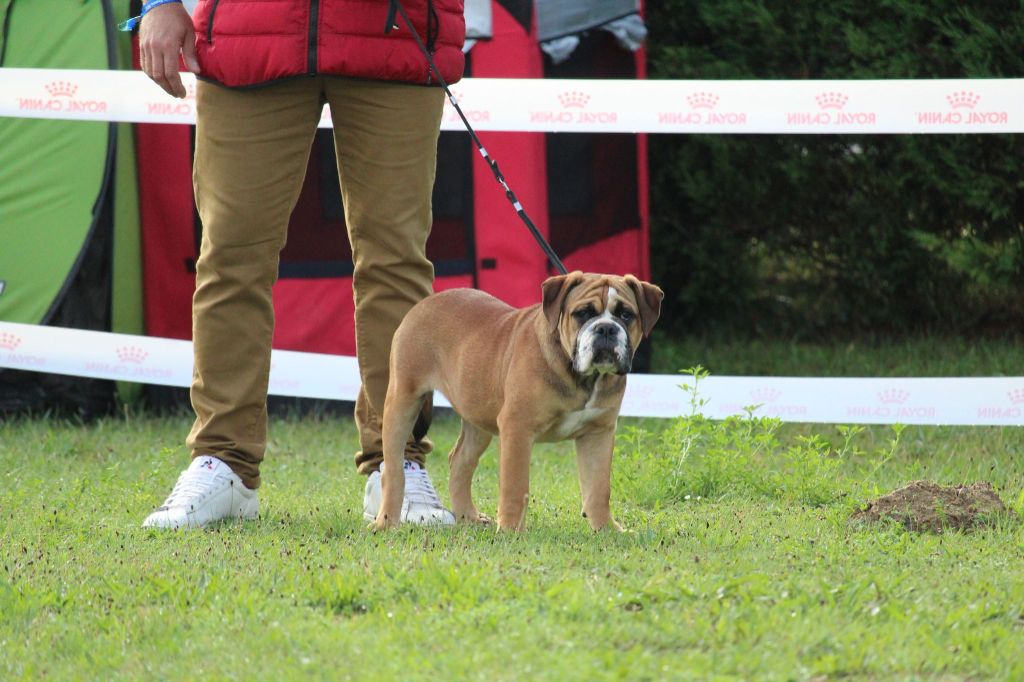 EXC FORMAT, TETE CORRECTE MAIS TIRE SUR LE BULLDOG ANGLAIS, MARCHE CORRECTE, BELLE POSITION, POITRINE, NE SE MET PAS EN AVANT A LA MARCHE, EXC CARACTERE