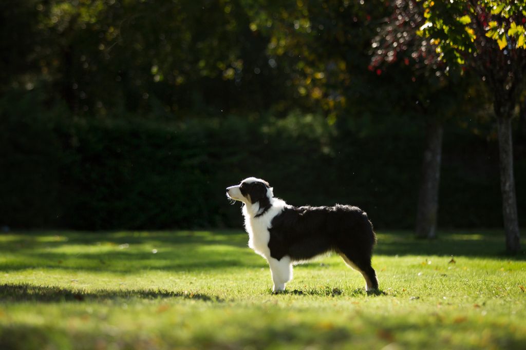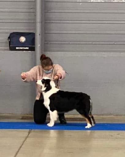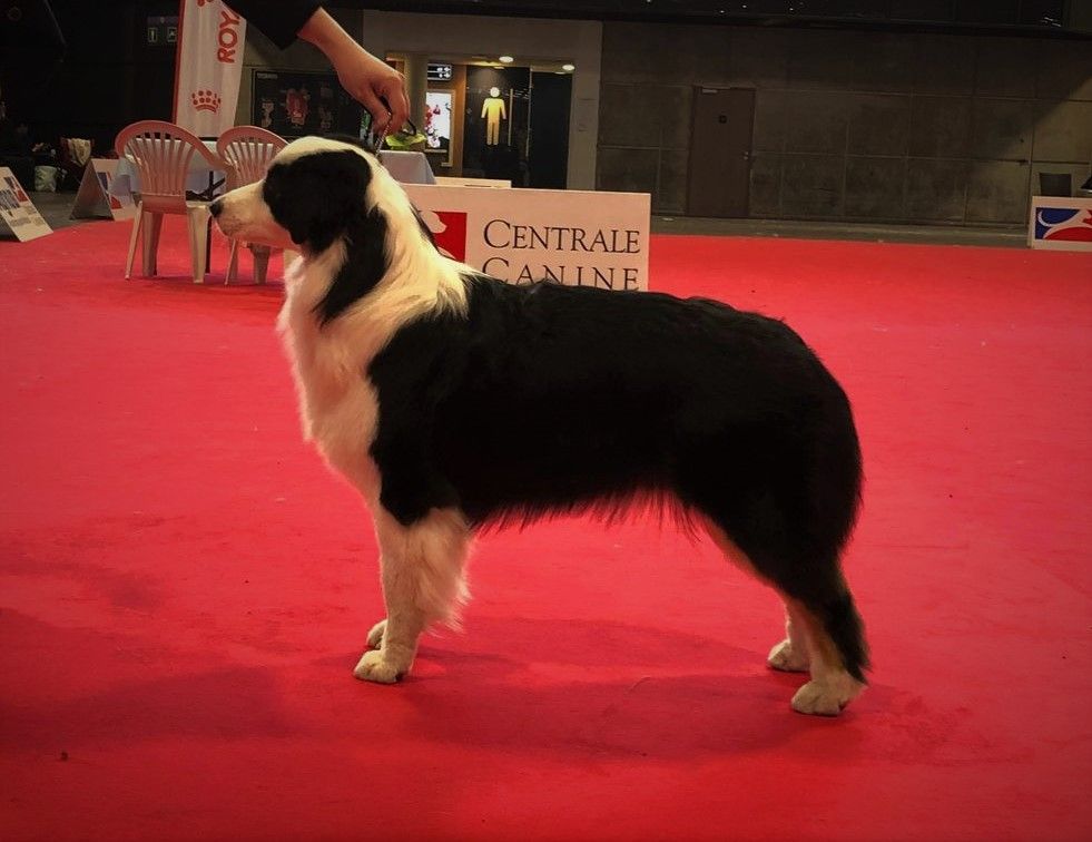 DCC, jolie tête, ?il en amande, oreille bien portée, bon stop, bonne construction, très bonnes angulations, ossature, aplombs et pieds, bonne ligne de dos, jolies allures latérales et sur le plan médian