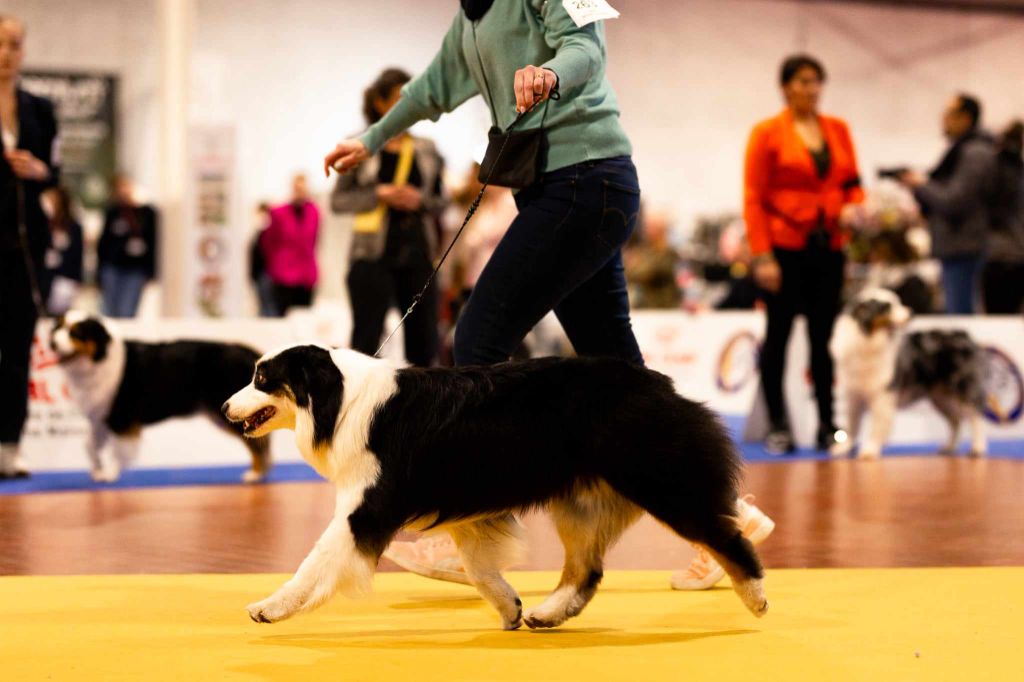DCC, joli sujet avec, exc typre et format, une belle tête, bien proportionnée, belle oeil, bonne oreille, exc encolure, exc ligne de dessus, exc angulation, poitrine correcte, exc démarche et mouvement