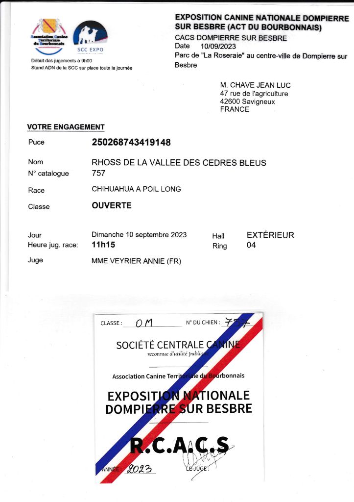 11 juin 2023 CACIB Boulazac 1er EXCELLENT