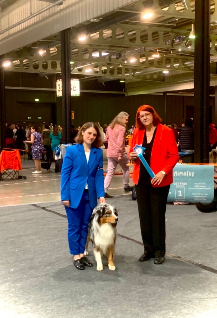 Pour sa première exposition Rainbow aura fait fort !-1er Excellent classe jeune mâle !!-Meilleur de Race Jeune !!- Meilleur jeune du Groupe 1 !!- Sélectionné dans les 5 derniers pour le Best in Show jeune !!