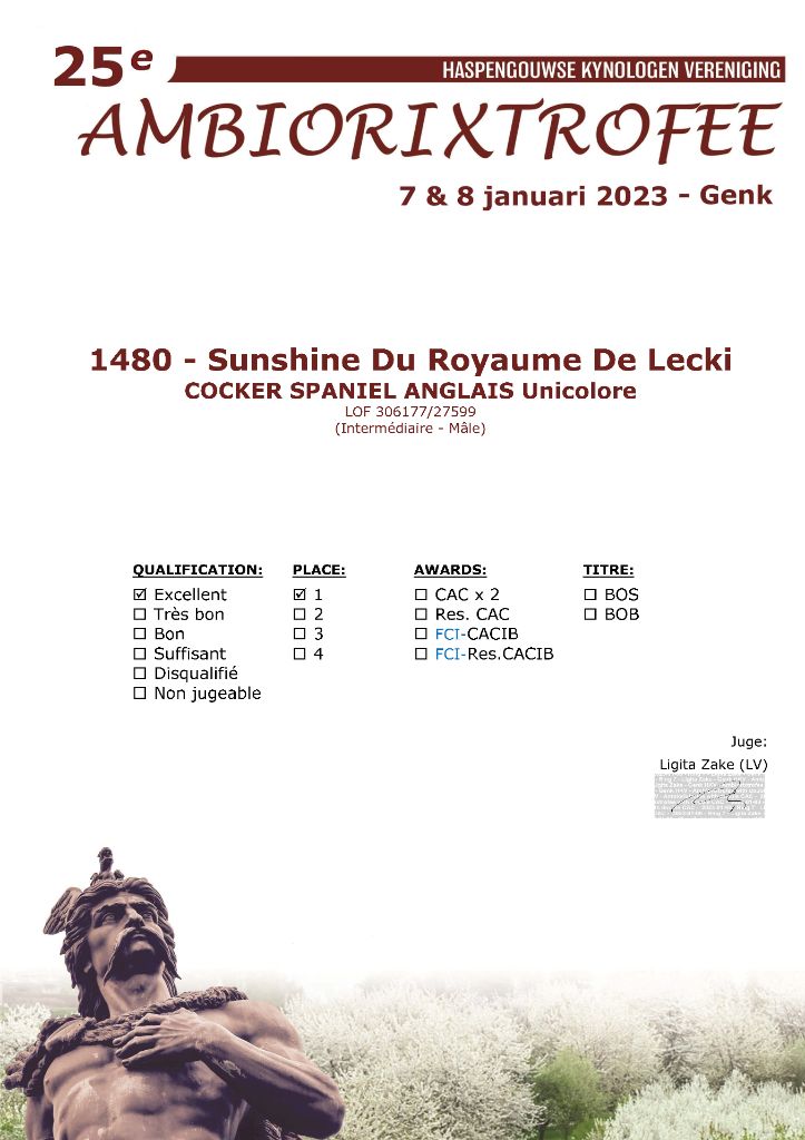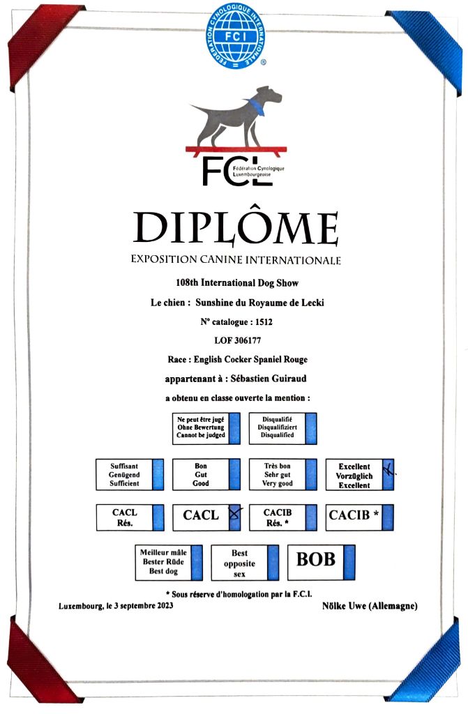 - Luxembourg 2023 : 1er Excellent classe Ouverte, CACL & Jeune Champion du Luxembourg