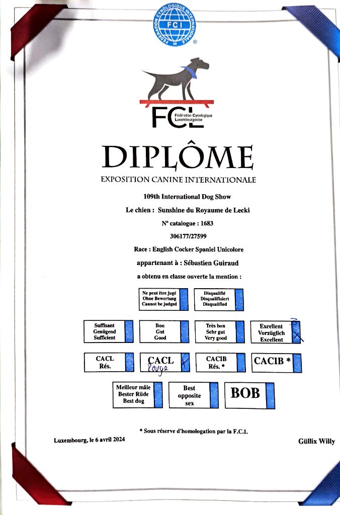 - Luxembourg 2024 : 1er Excellent classe Ouverte, CACL & Champion du Luxembourg
