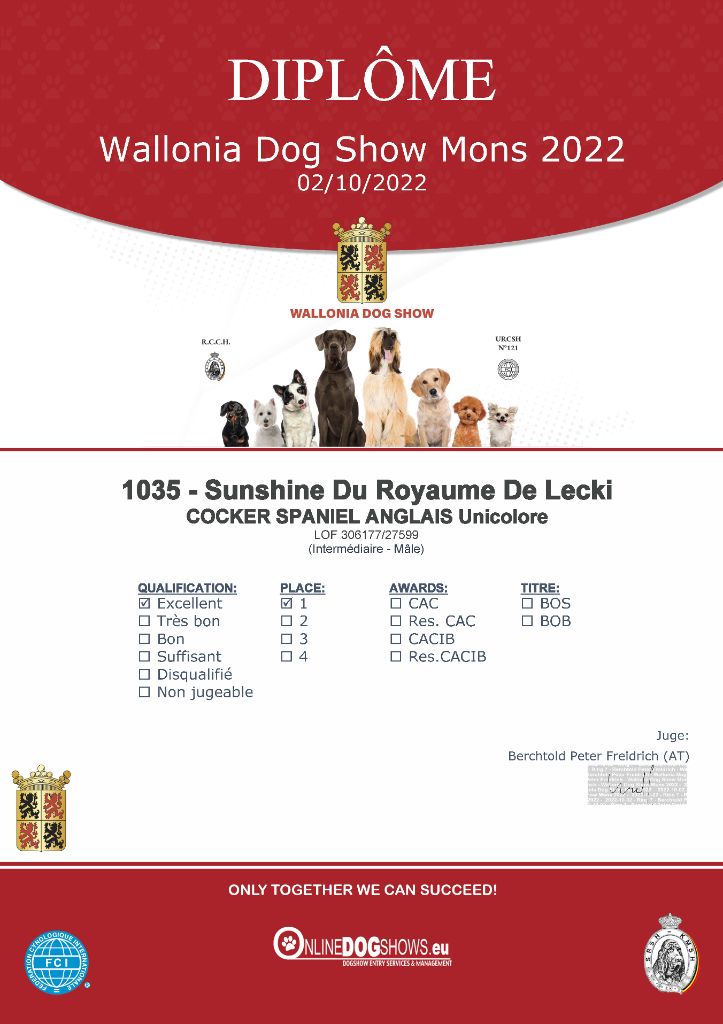- Eurodogshow Kortrijk 2022 (Belgique) : 2ème Excellent classe Intermédiaire