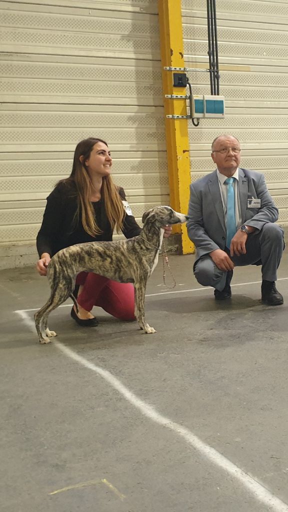 Très joli sujet. Excellent format. Tete féminine. Excellente oreille. Bonne ossature. Excellente angulation excellente ppotrinenpour son age. Excellent fouet. Excellente pigmentation. Marche facileJuge BIS: Mme SANSON