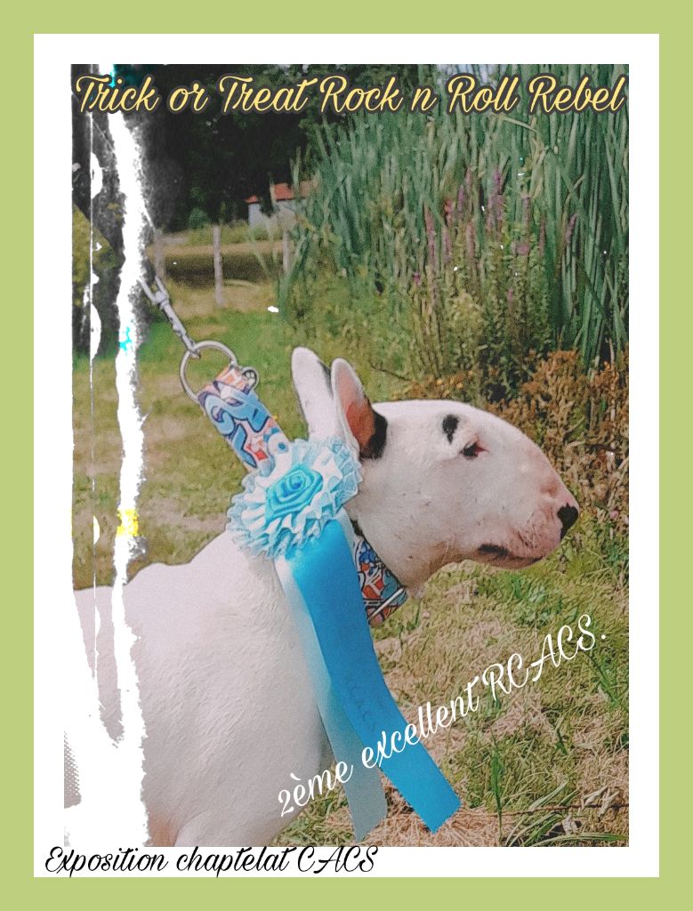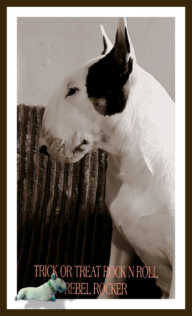 Chien Bull Terrier Trick or treat Rock n roll rebel ''rocker''