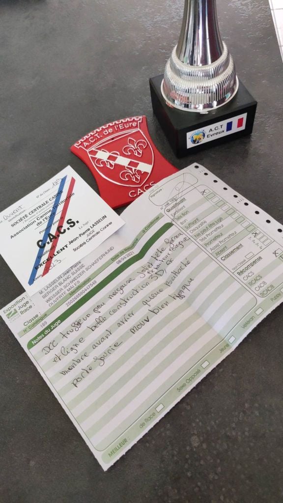 DCC, Sujet bien dans le type, Excellente tête : ligne + ?il + pigmentation truffe et lèvres. Excellentes oreilles (taille et position).Croupe suffisamment large.Belle encolure, très belle ligne de dos, excellent osset et angulation.Mouvement typique.Excellente conditions générales