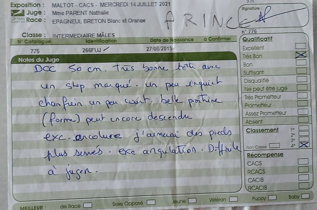 Pédigree de Prince du domaine sainte anne Des Corps Francs