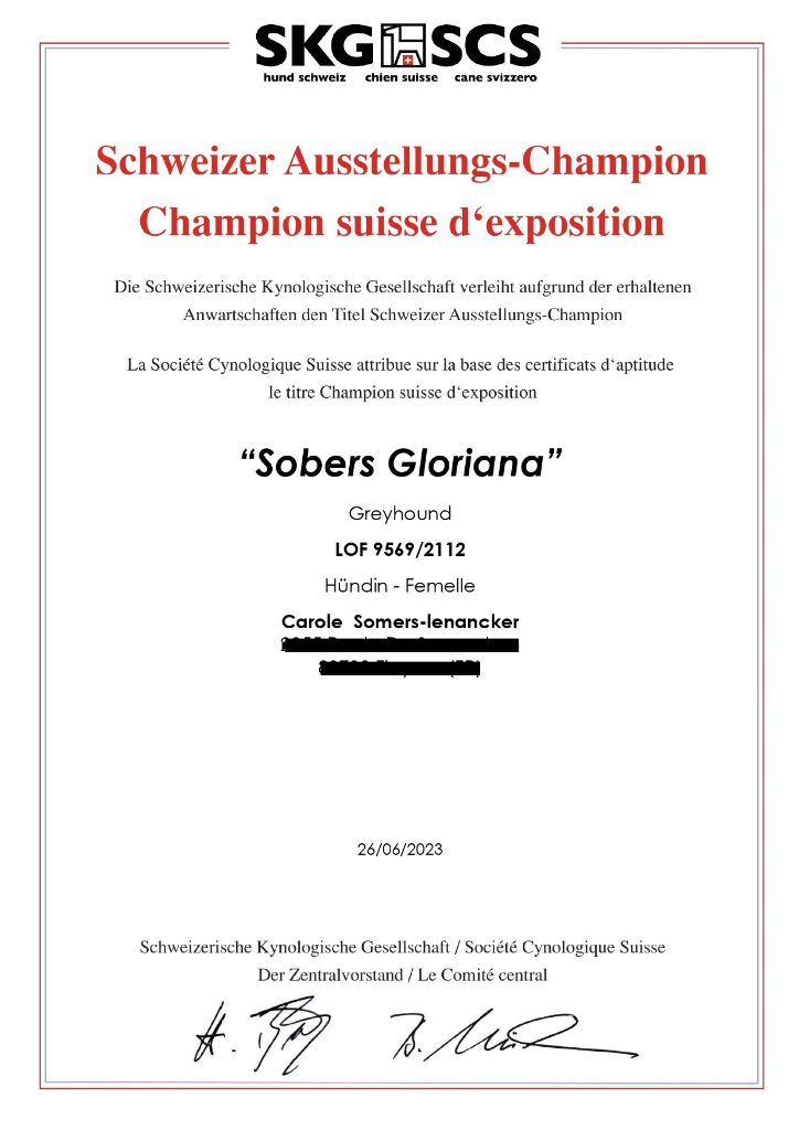 Chien Greyhound CH. Sobers Gloriana gazelle