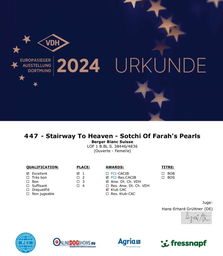 - 1er Excellent - Anw.Dt.Ch.VDH - Rés.CACIB - CHAMPIONNE D'ALLEMAGNE