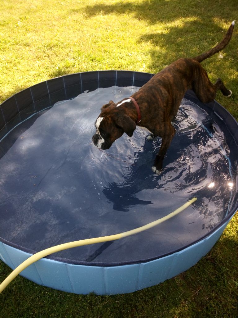 Olympia de Matyane, femelle bringée née à la maison le 20-06-2018. D'une portée de 11 chiots sans tare dont 7 mâles tous complets.