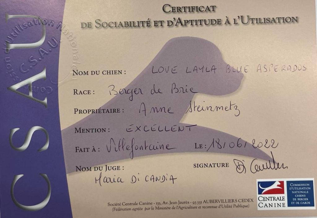 Chien Berger de Brie CH. Lorelei¯ love layla blue asperados