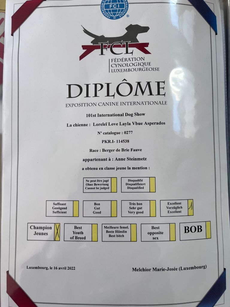 15 avril 2022 : exposition du Luxembourg : meilleure jeune femelle, CAC