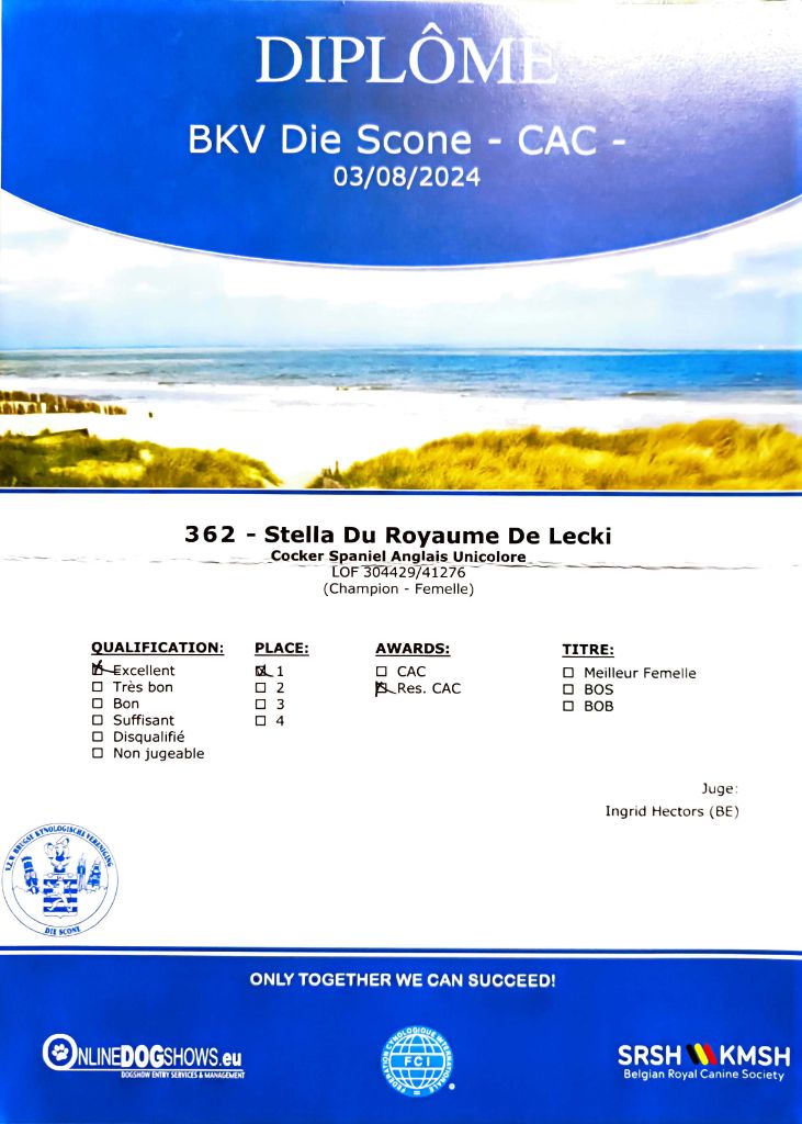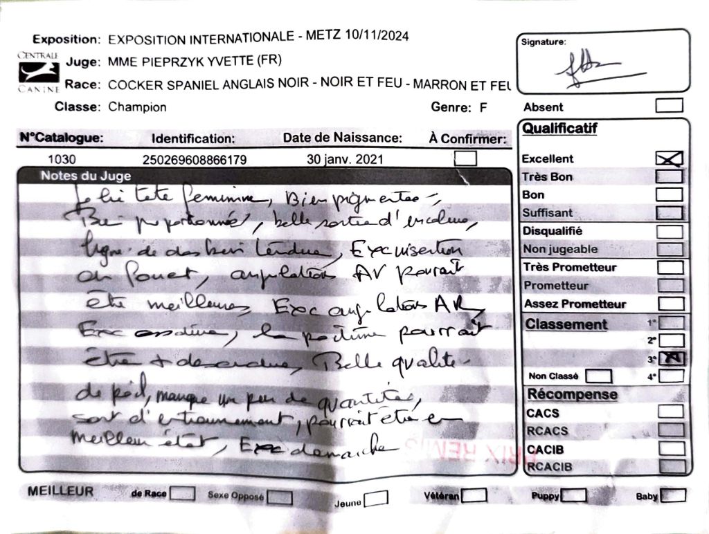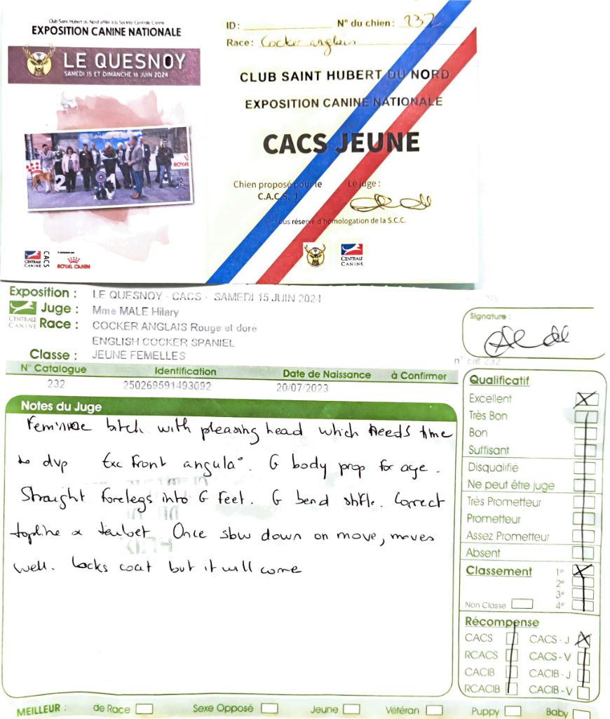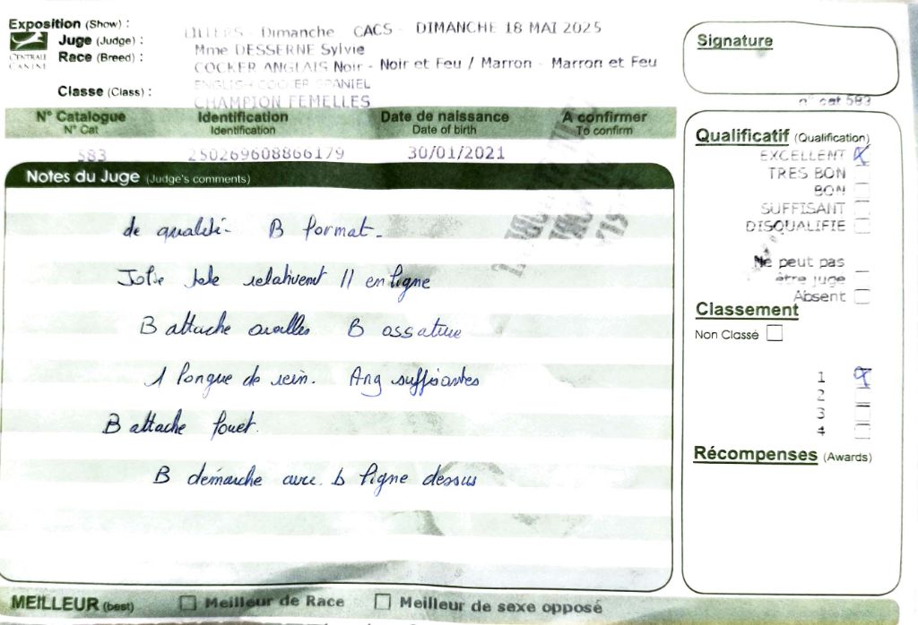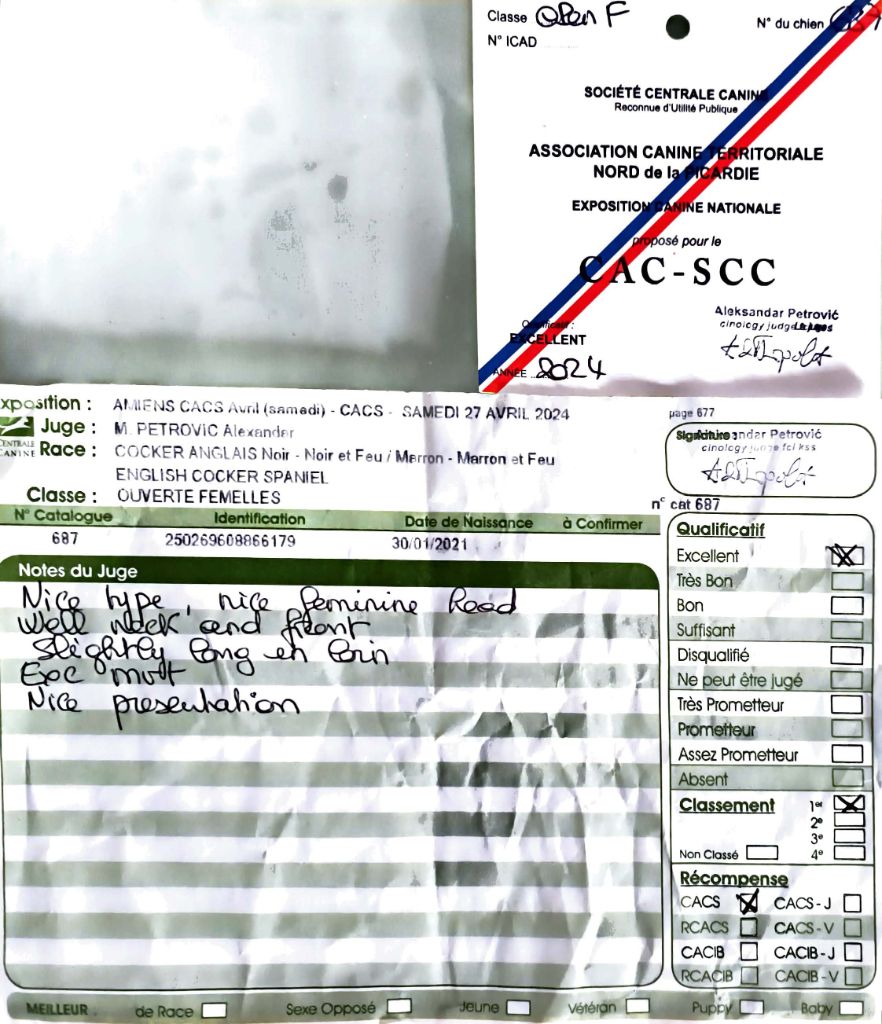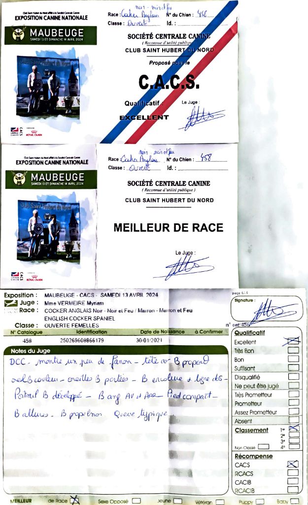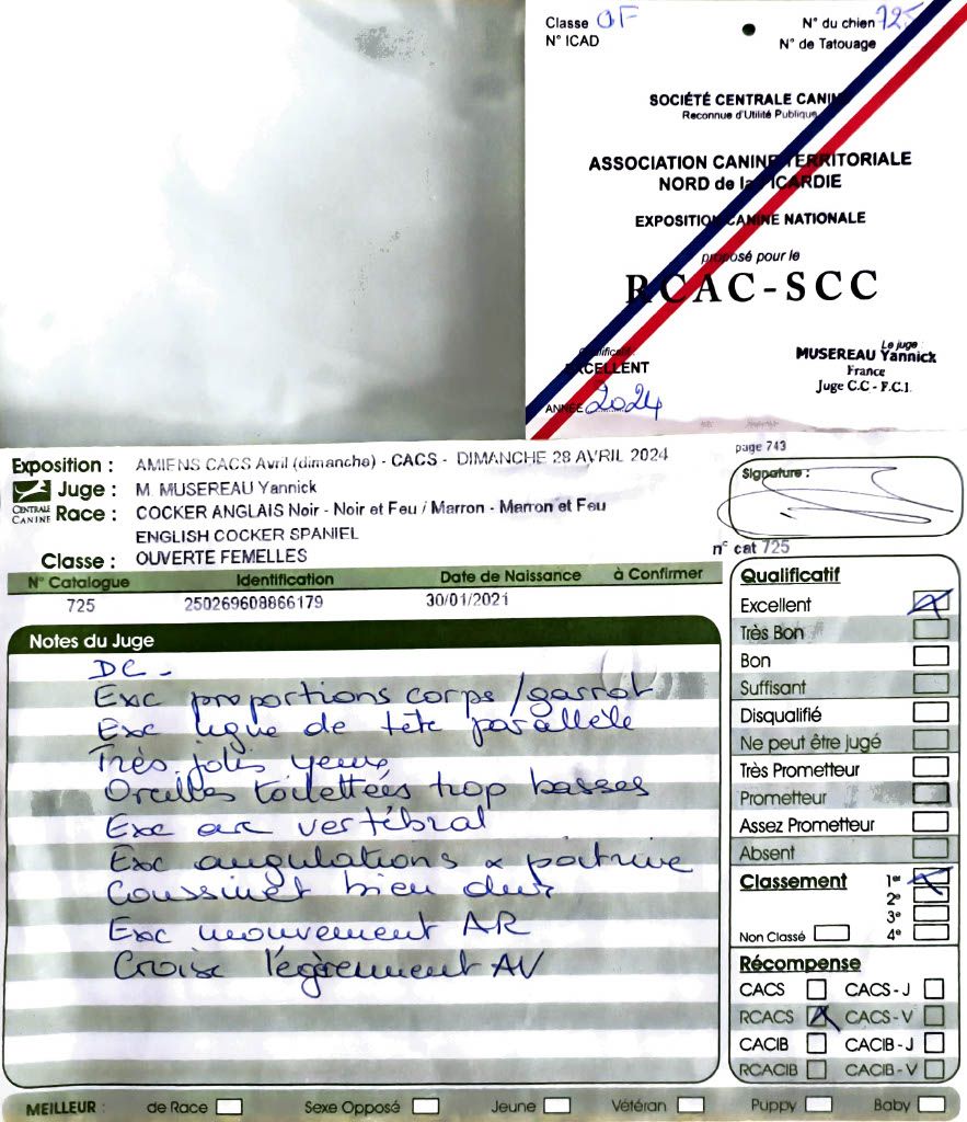 - Amiens 2024 : 1er Excellent classe Ouverte, CACS & RCACS