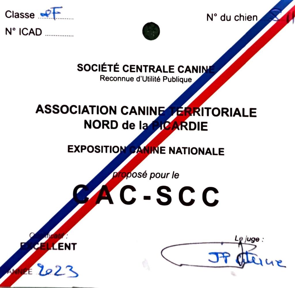 - Thenelles 2023 : 1er Excellent classe Ouverte & CACS