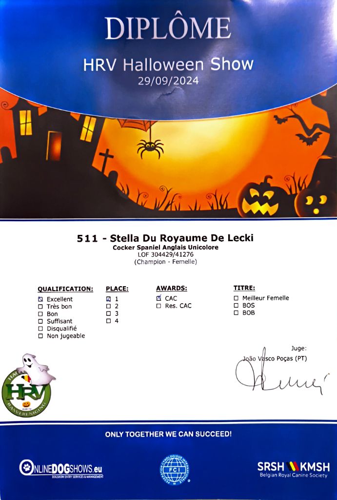 - Genk HRV 2024 (Belgique) : 1er Excellent classe Champion & CAC