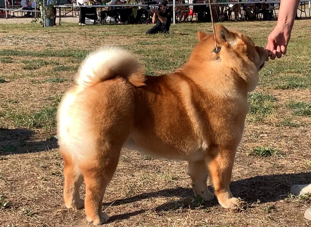 Un peu longue de corps, mouvement typique, tête correct, ligne de dos et grasset correct, longueur de poil et couleur correct, excellent caractère, superbe présentation.