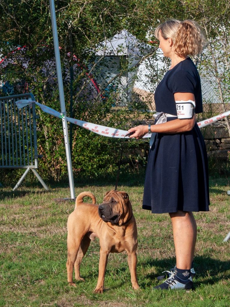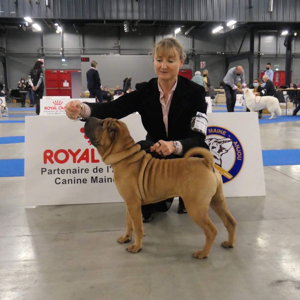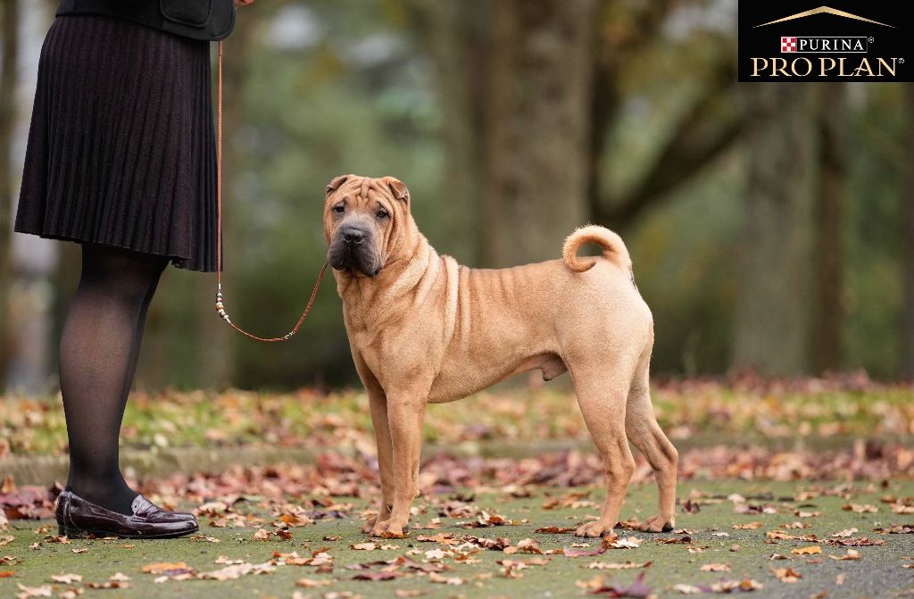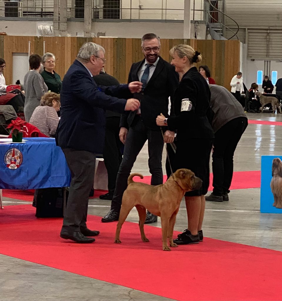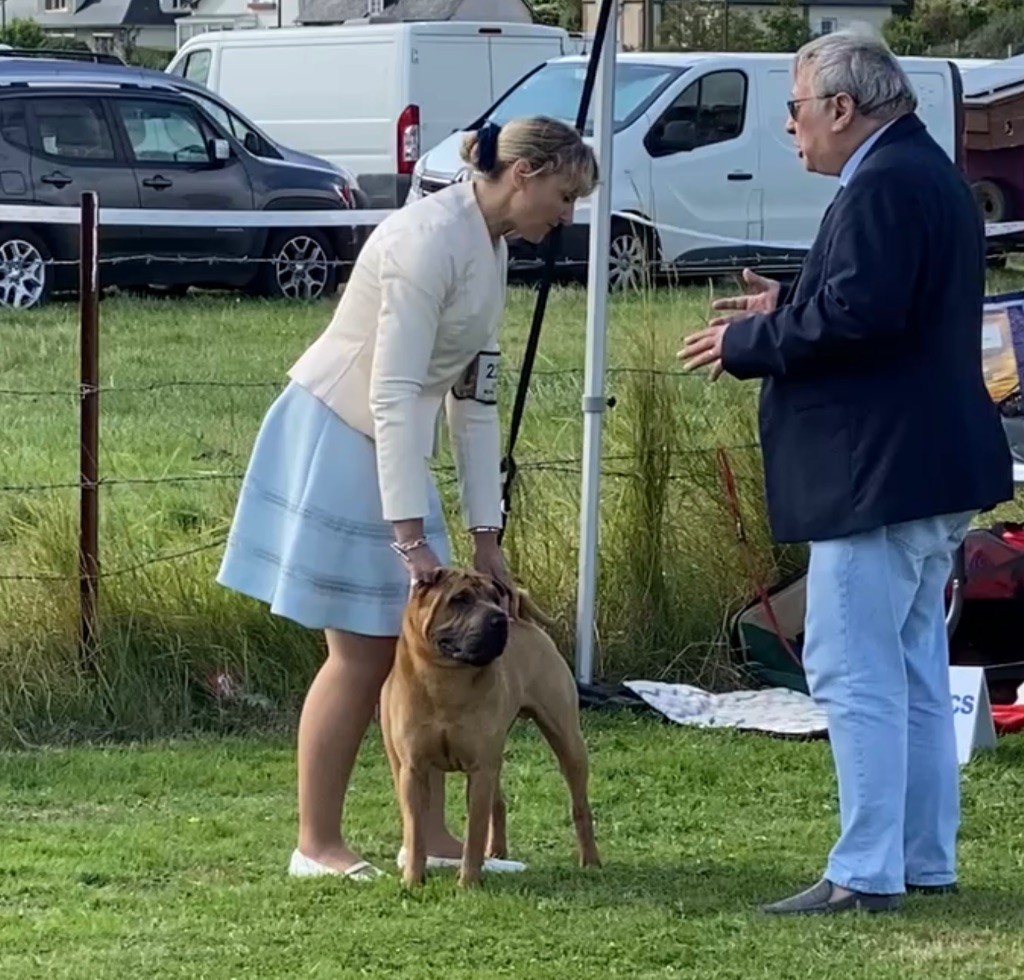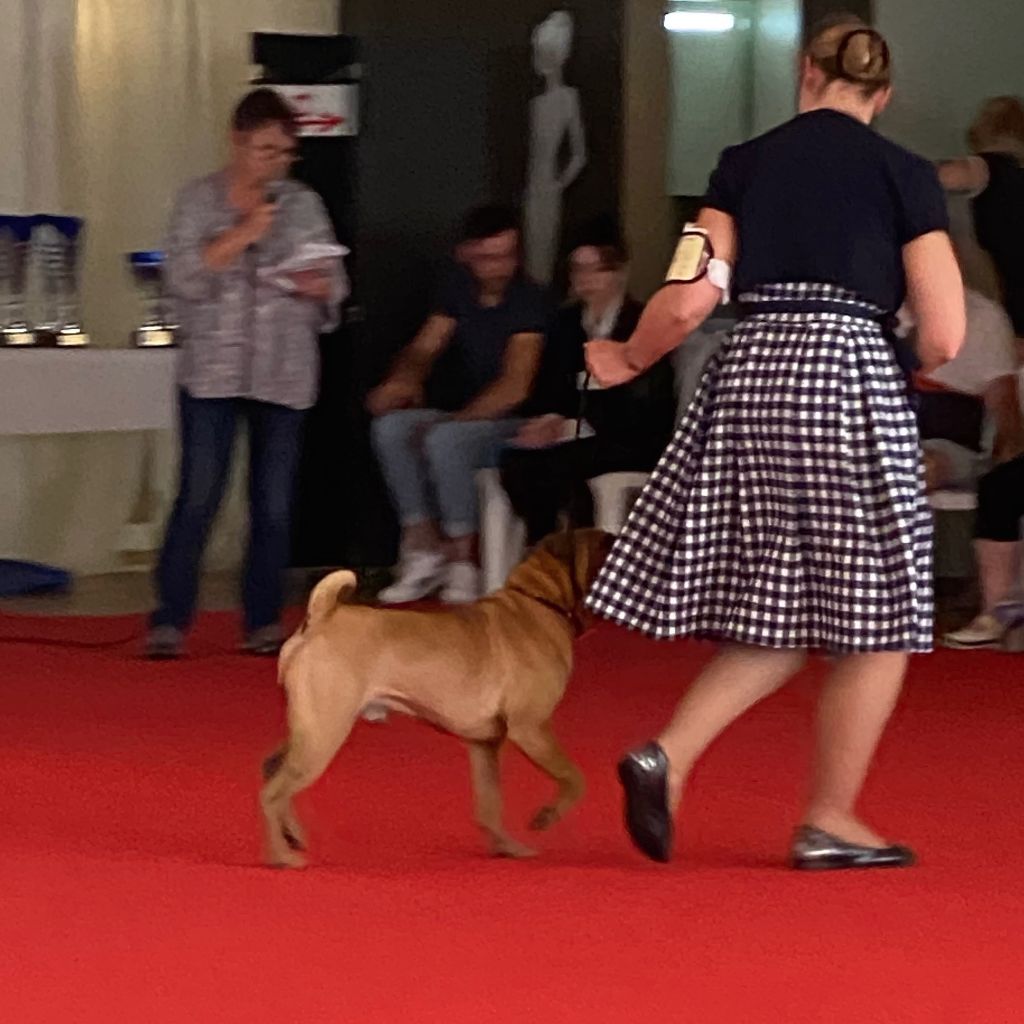 Puissant - Exc. ossature et construction en général - Exc. dos, croupe, queue - Exc. angulations avant et arrière - Exc. texture de poil - Très belle tête - Museau hipo - Exc. petits Yeux et oreilles - Bonne denture - Exc. allures - GRAINE DE CHAMPION